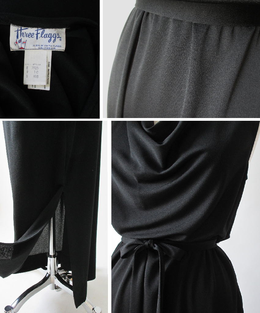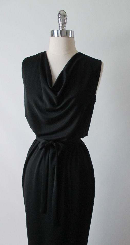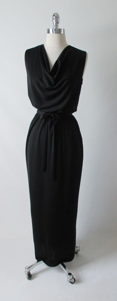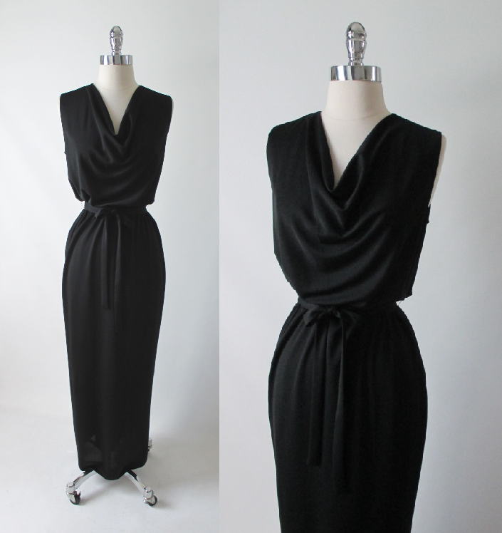 • Vintage 60's Black Full Length Grecian Cocktail Dress Evening Gown