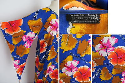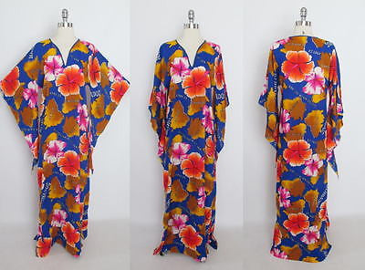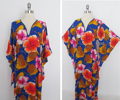 • Vintage 60's Kaftan Tunic Dress Draped Batwing Sleeve Beach Cover Tiki Luau M