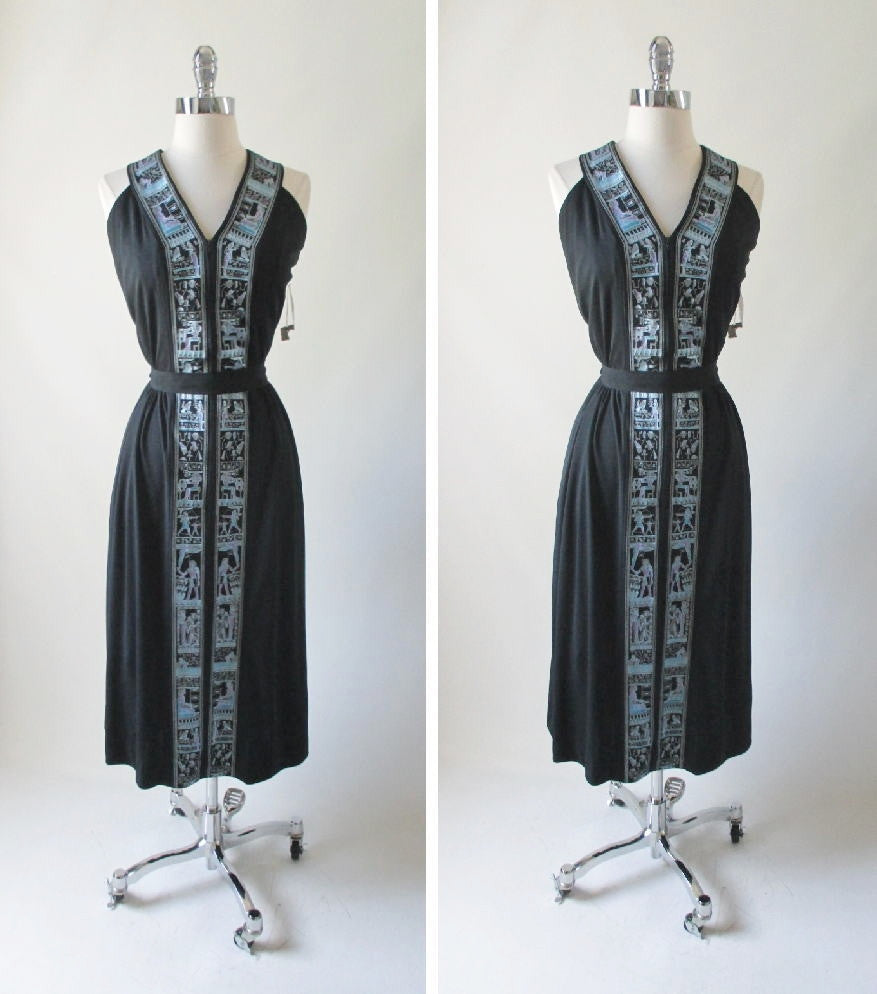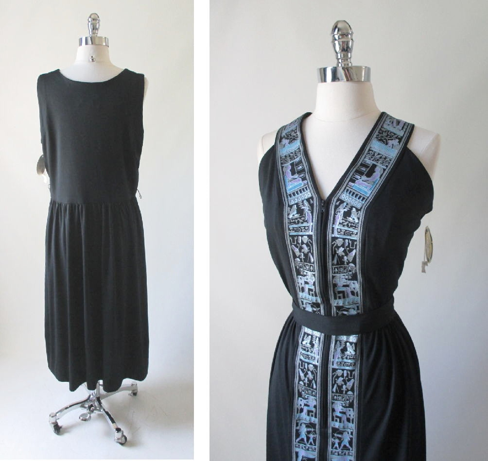 • Vintage 70's Alfred Shaheen Egyptian Revival Hawaiian Dress New 1X 18
