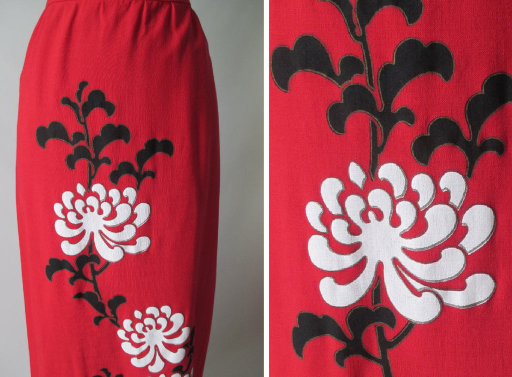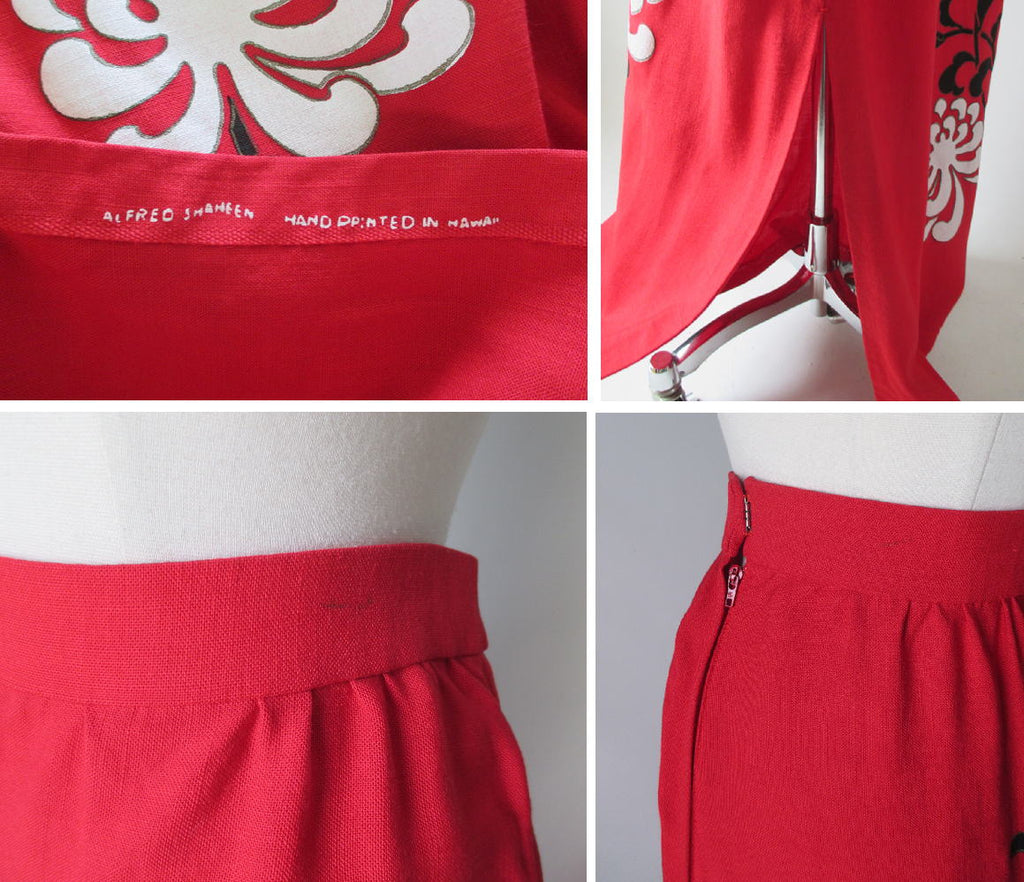 Straighter cut skirting + Alfred Shaheen printed on selvage / hem