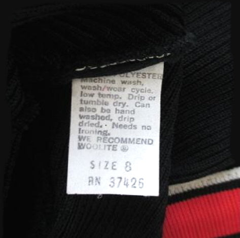 Poly knit sweater top / short sleeved jacket with red / white stripe,