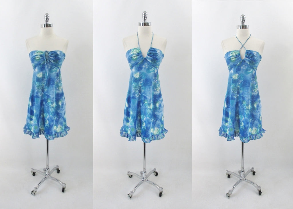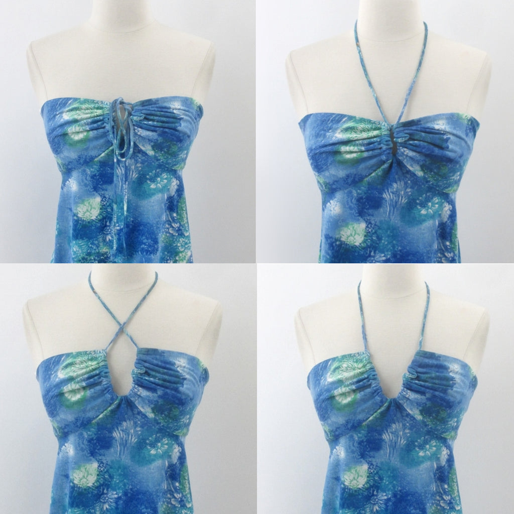 • Vintage 70s Convertible Halter Tie Hawaiian Dress XS