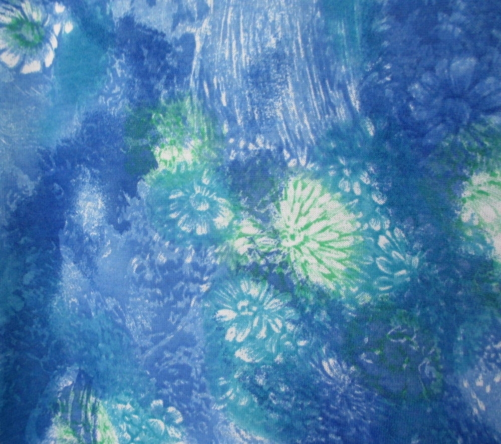 Soft jersey fabric in shades of blue and hints of golden yellow