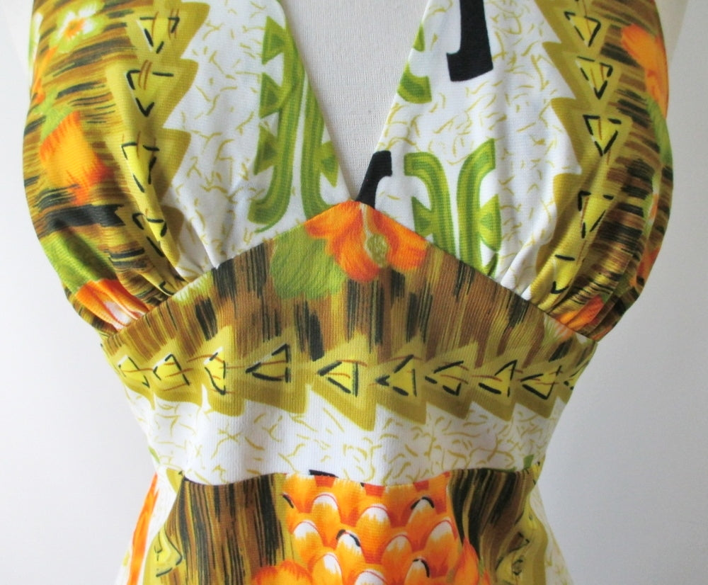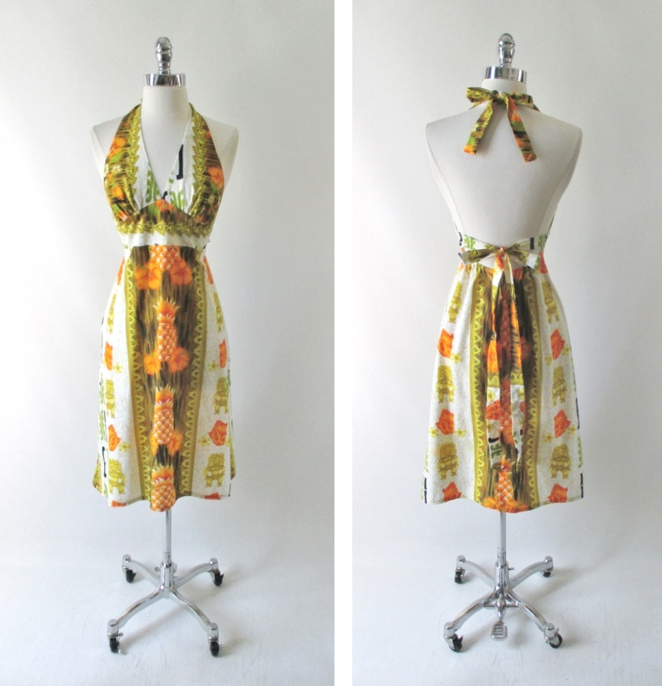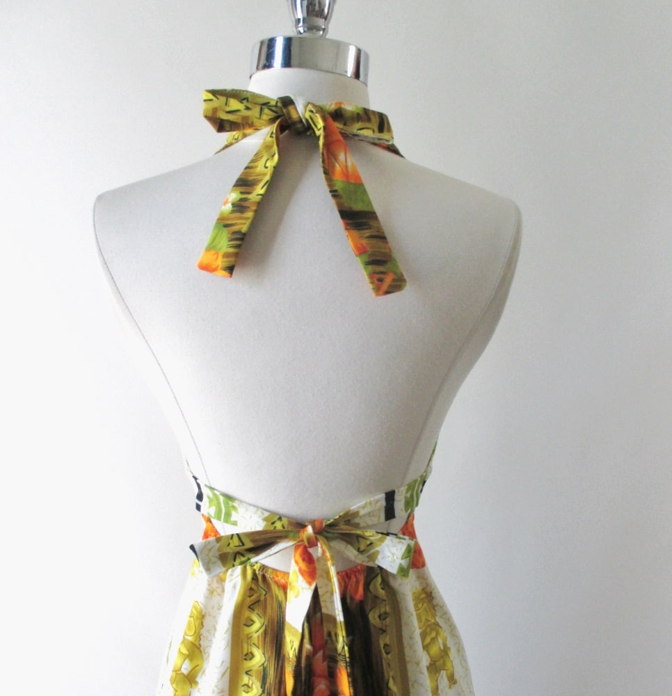 • Vintage 70's Hawaiian Tiki Halter Dress S