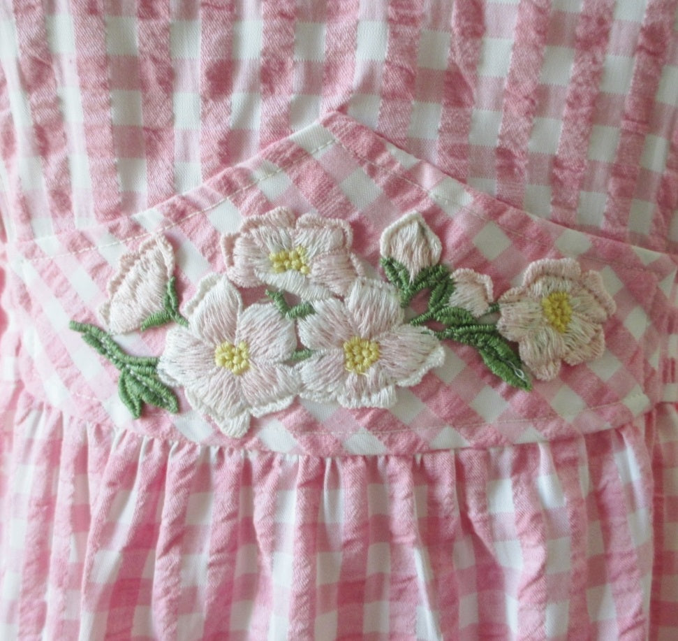 • Vintage 70's Pink Gingham Seersucker Dolly Dress L