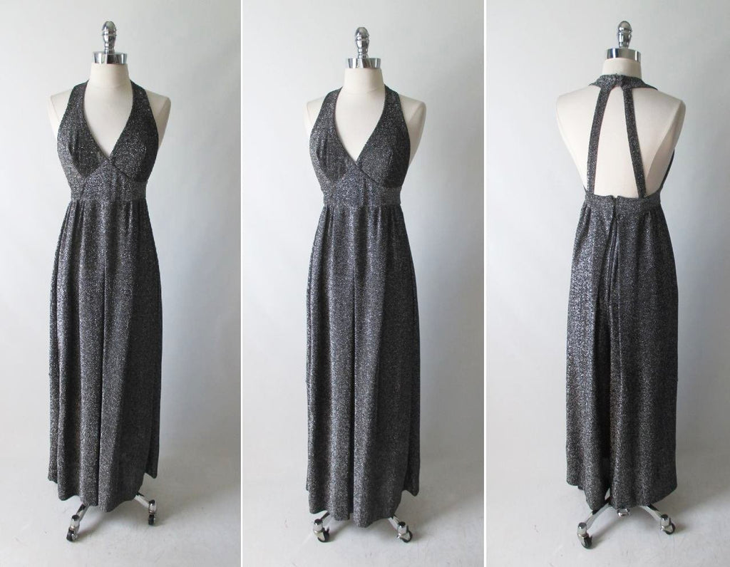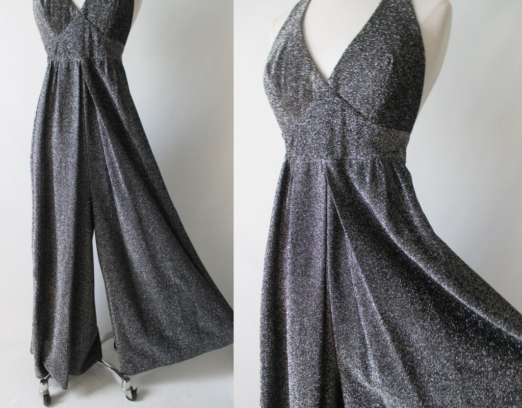 Vintage 70's Silver Lamé Halter Jumpsuit XS