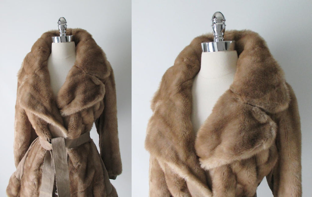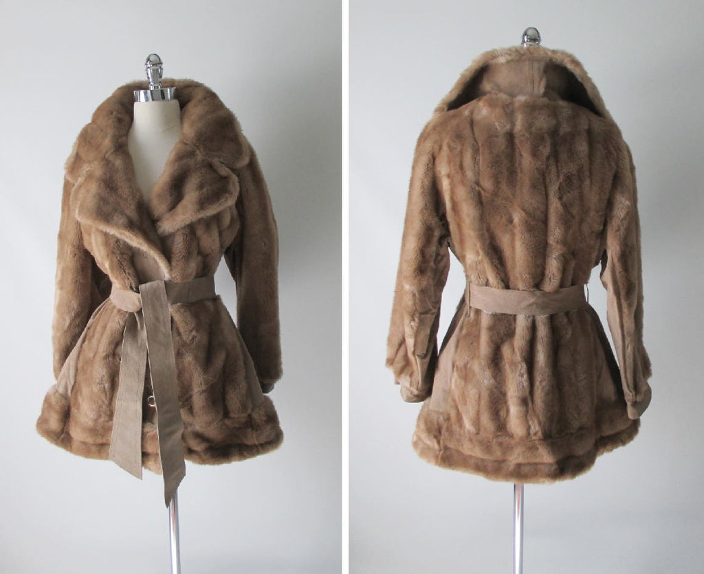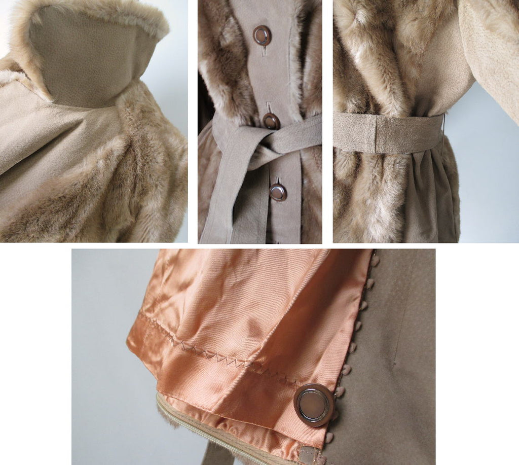 • Vintage 70's Tissavel Faux Fur Mink Suede Princess Coat Jacket L