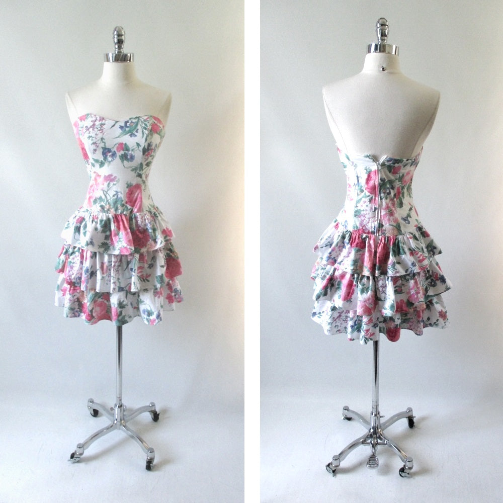 • Vintage 80's 90's Garden Flowers Strapless Mini Dress XS