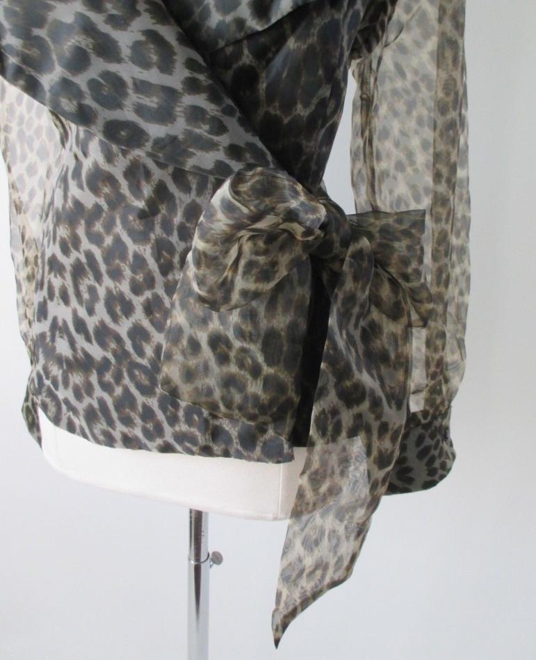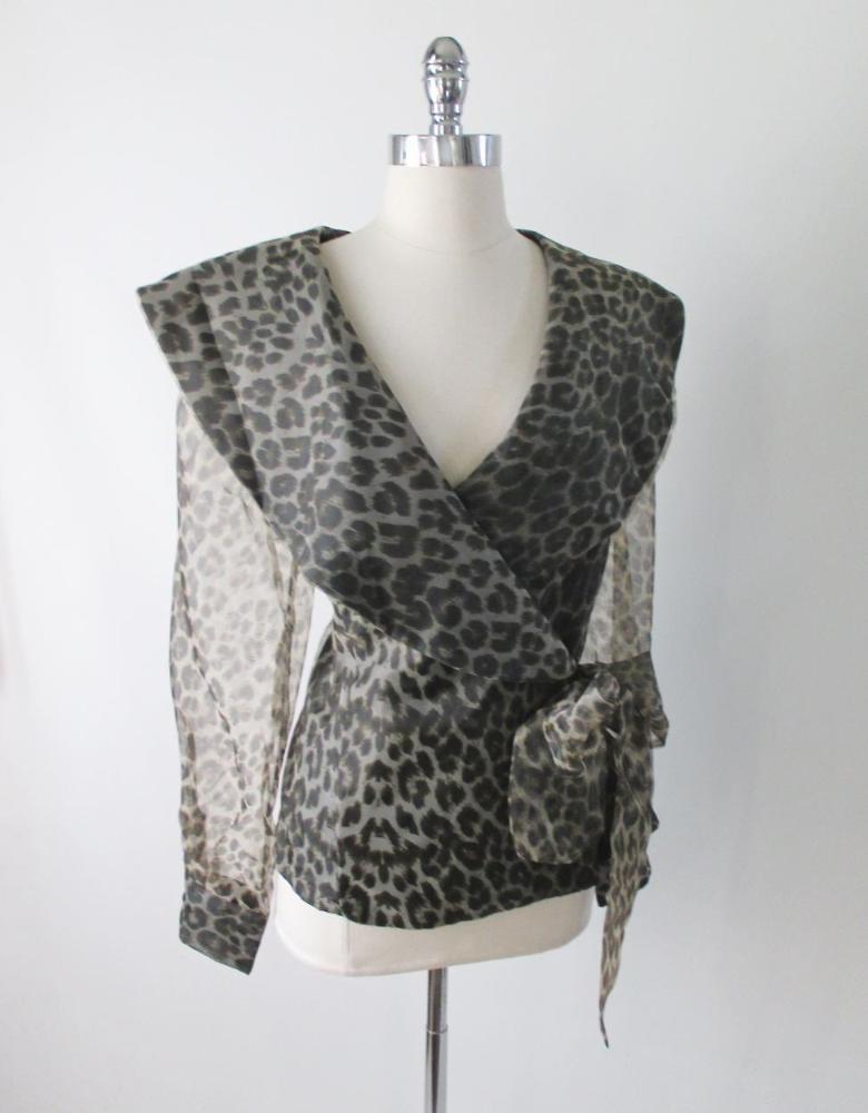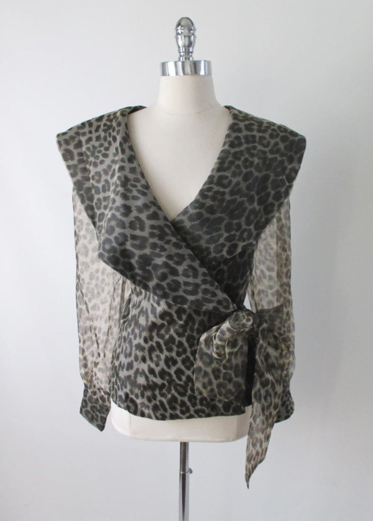 • Vintage 80's Leopard Sheer Blouse Shirt Top With Bow XL XXL