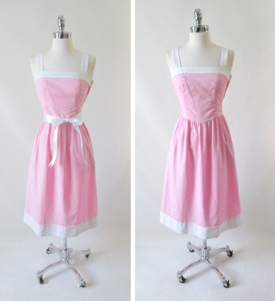 • Vintage 80's Pink White 50's Style Sundress Dress XS