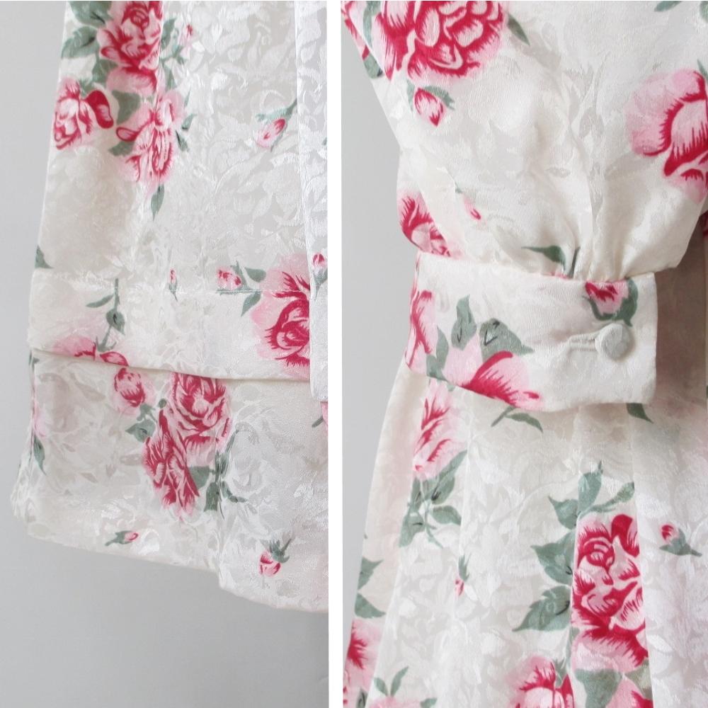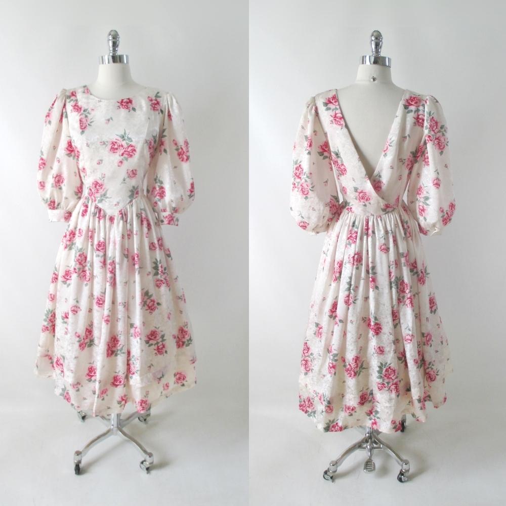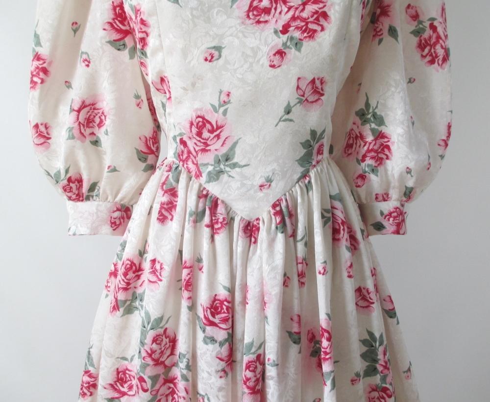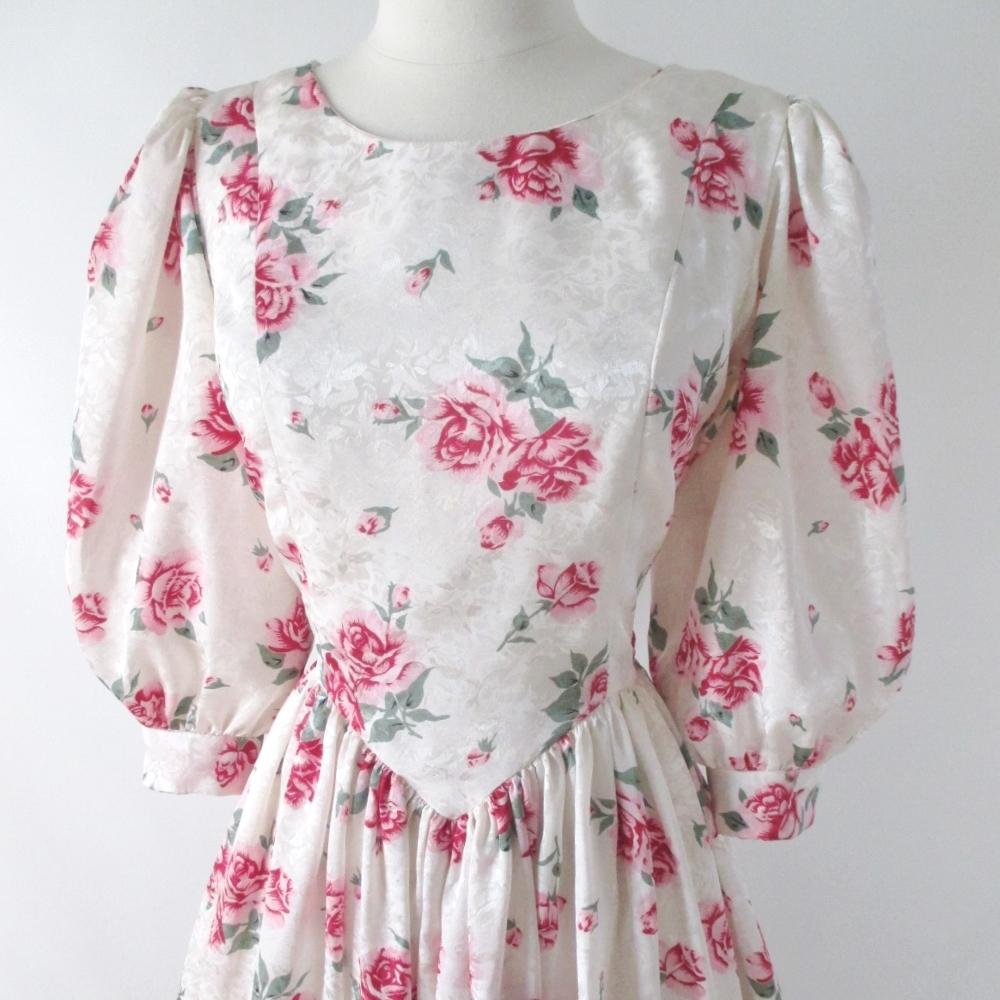 • Vintage 80s Red Pink Roses Full Skirt Tea Party Dress L