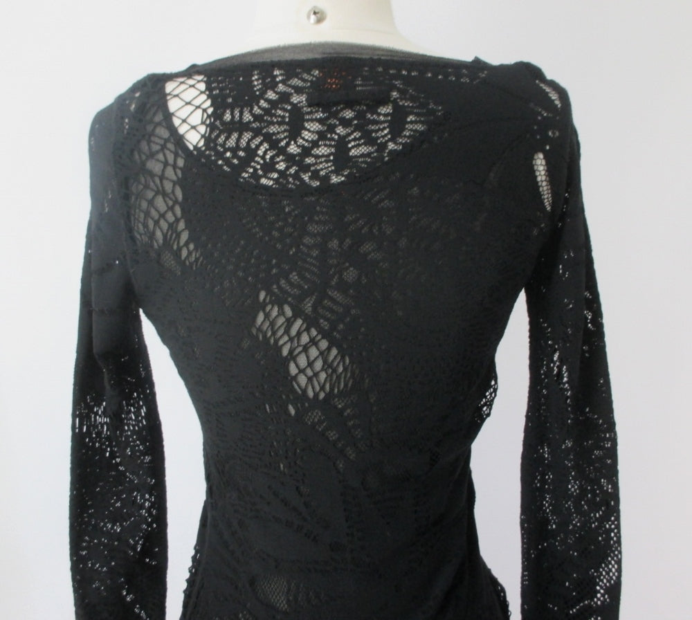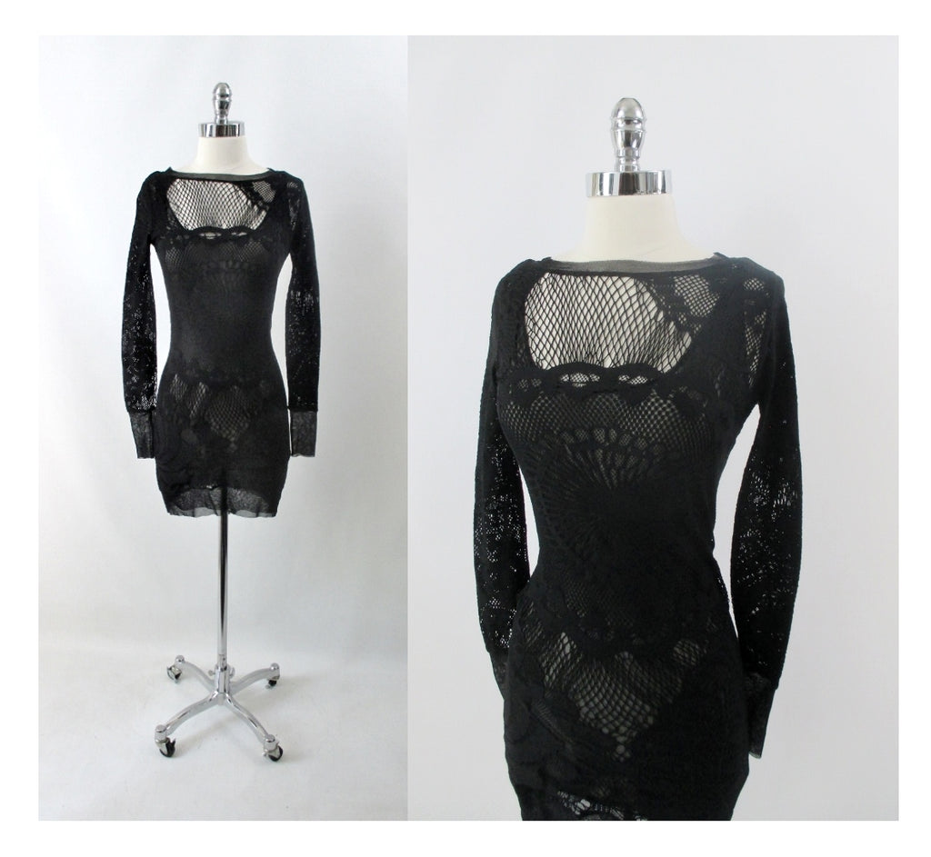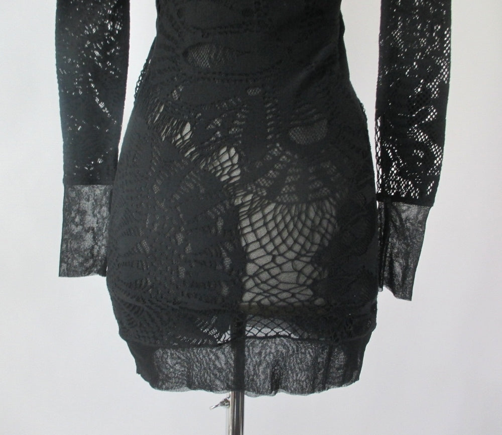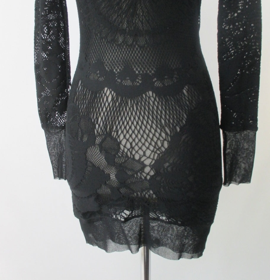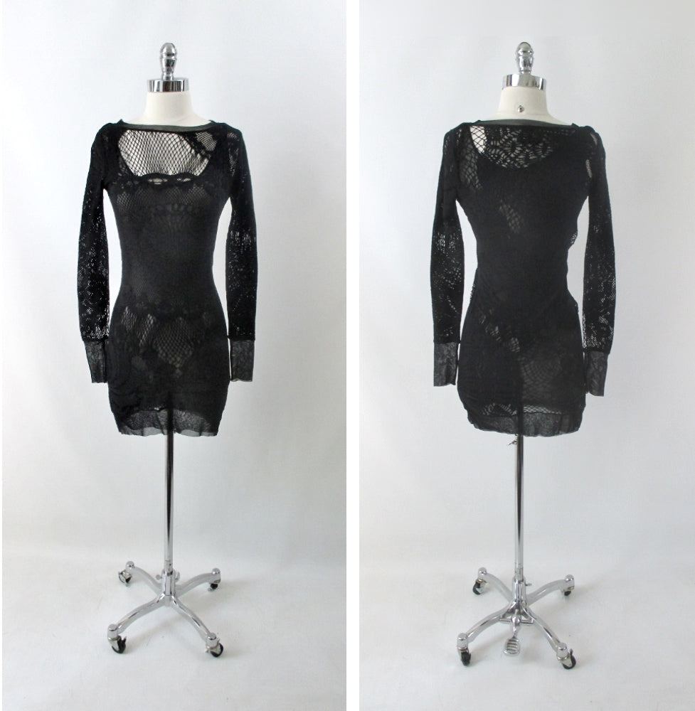 • Vintage 90s Jean Paul Gaultier JPG Soleil Black Fishnet Lace Bodycon Dress S