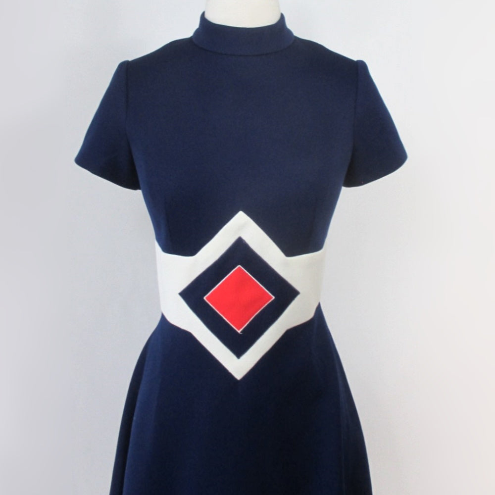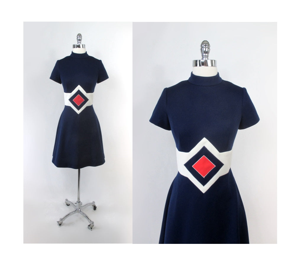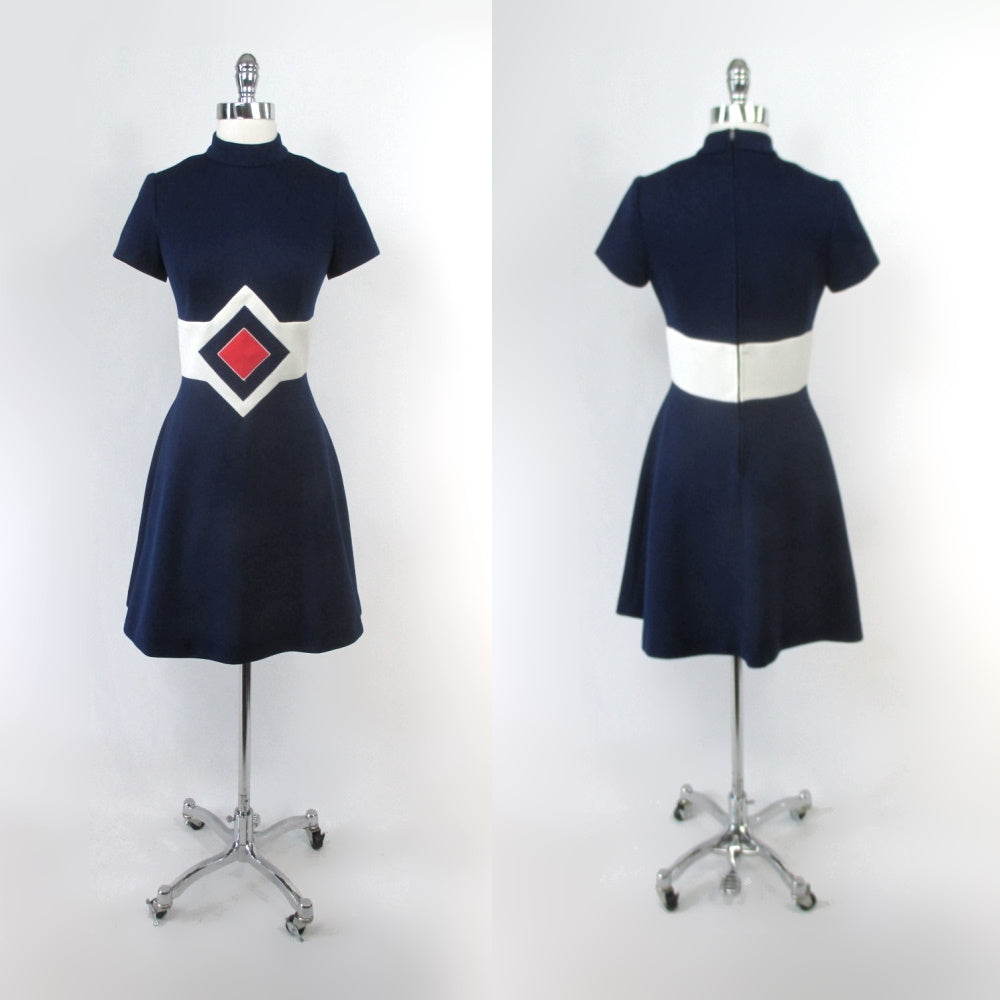 Vintage 60's Space Age Red White Blue Mod Mini Dress M