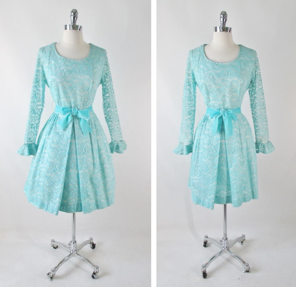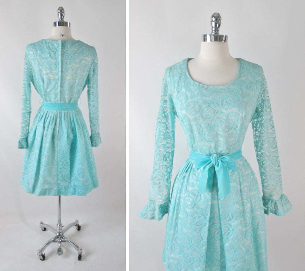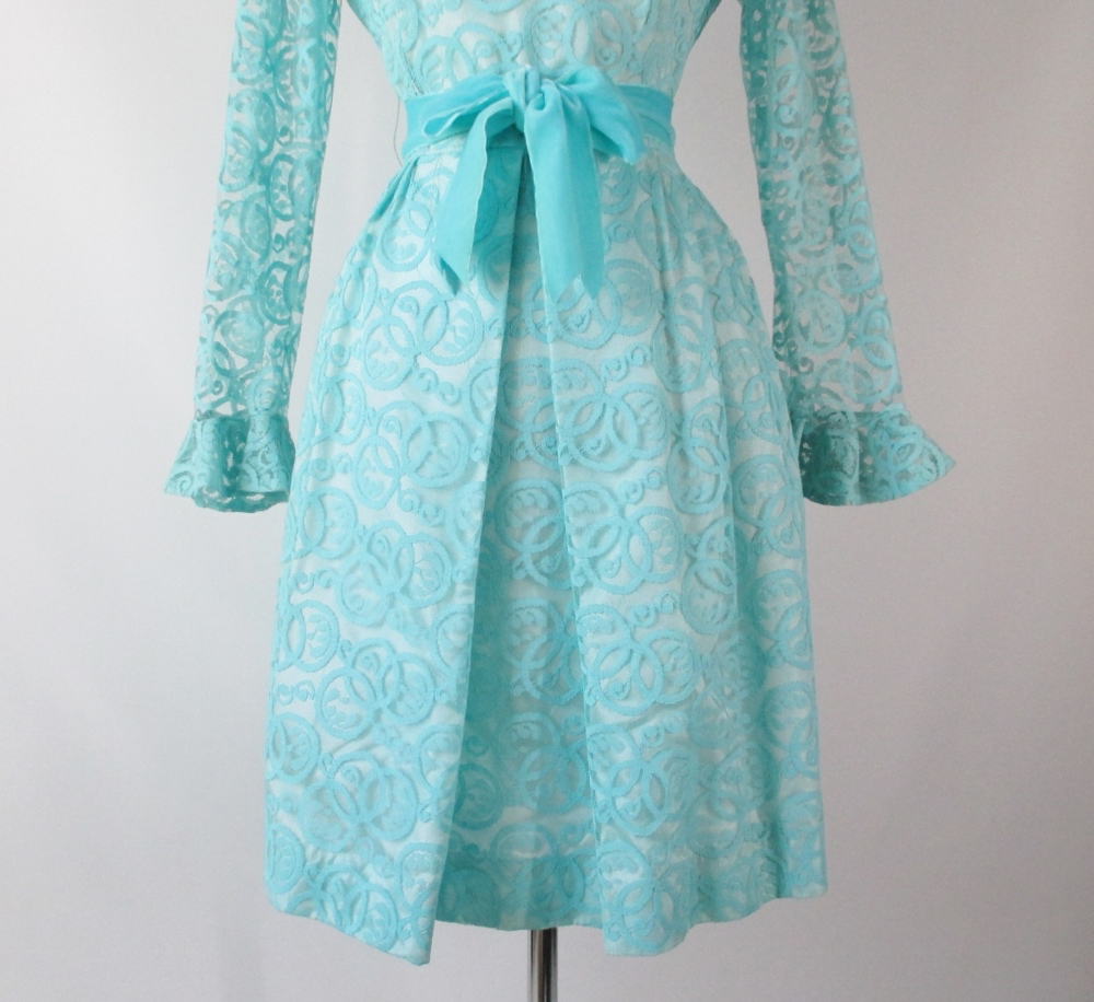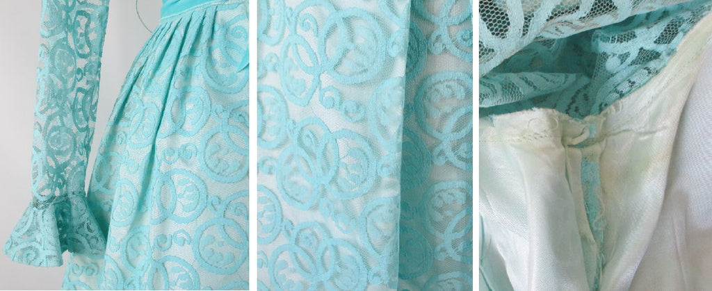 Vintage 60's Tiffany Blue Lace Special Occasion Party Dress L