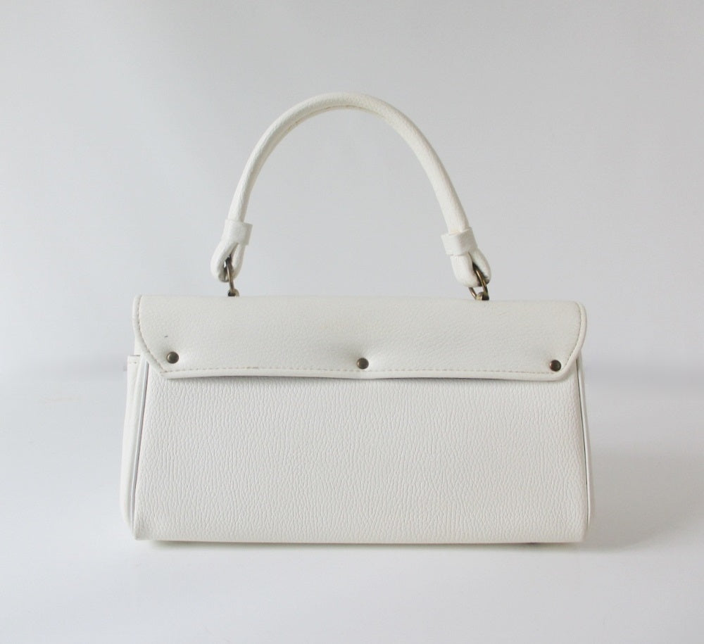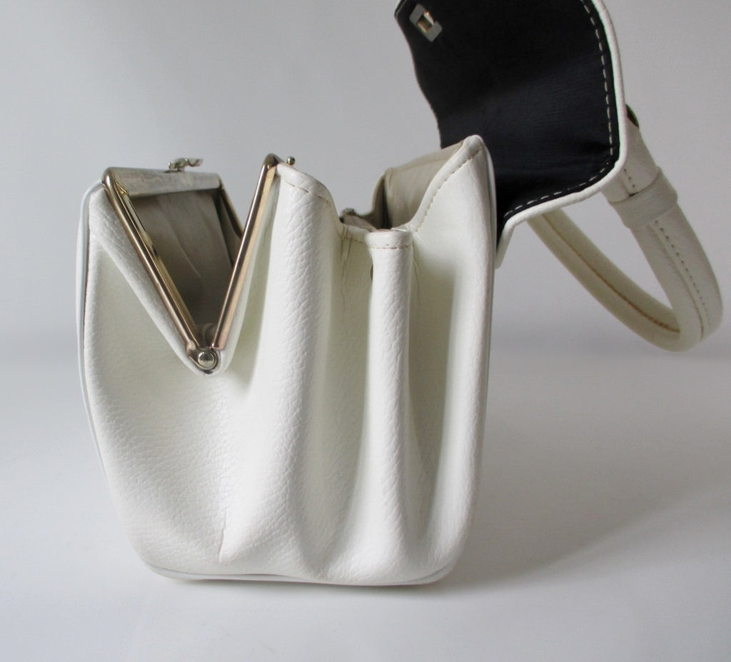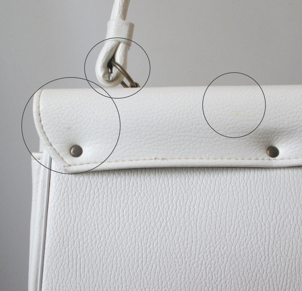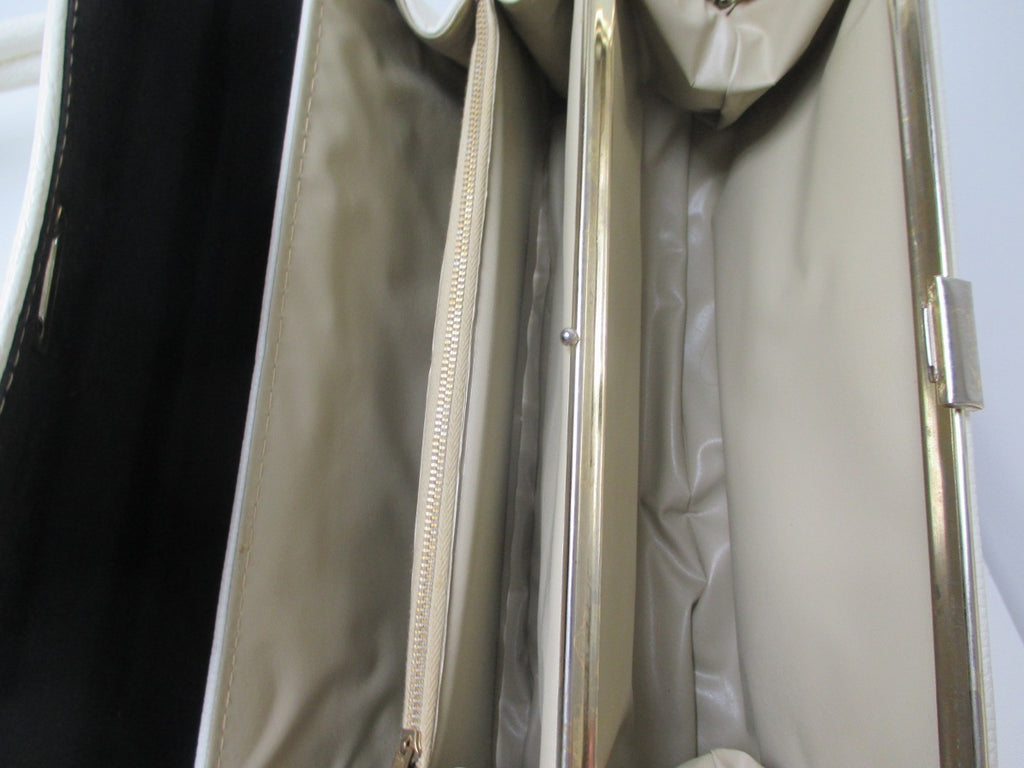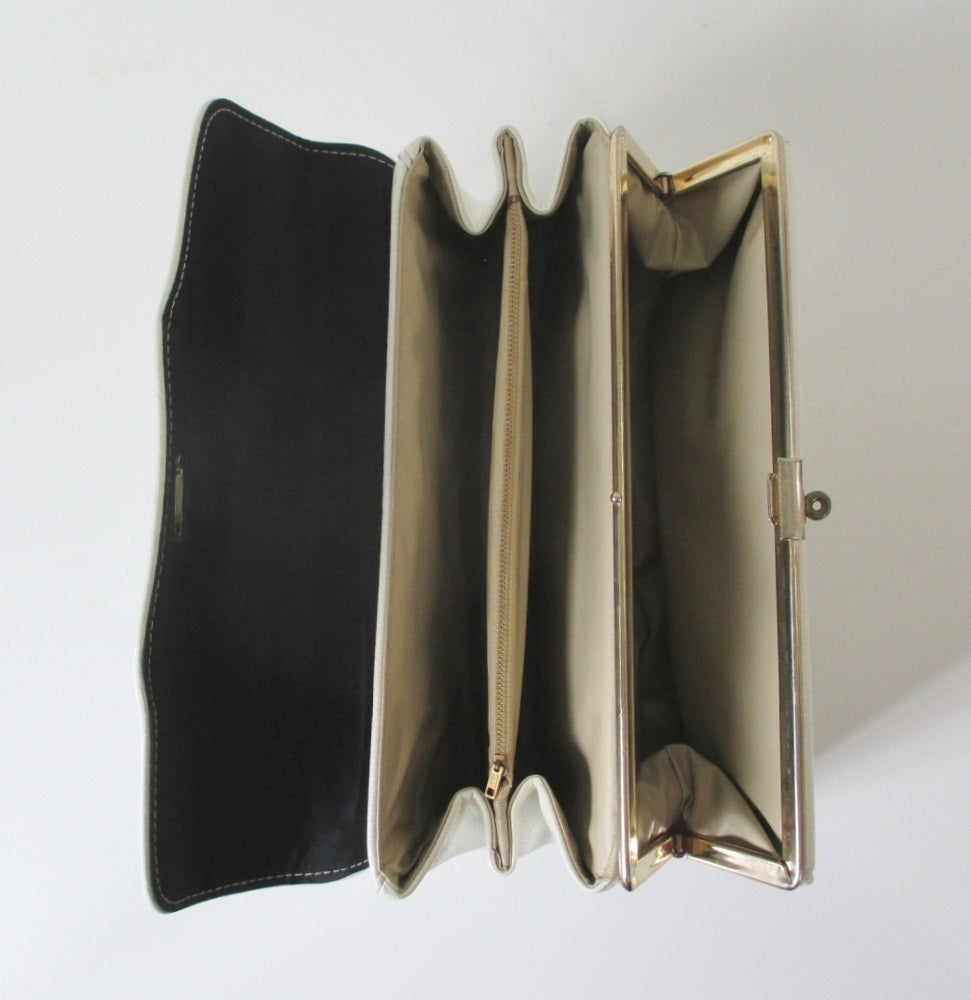 Lined in tan vinyl + Black lined flap + Gold feet + Riveted top flap