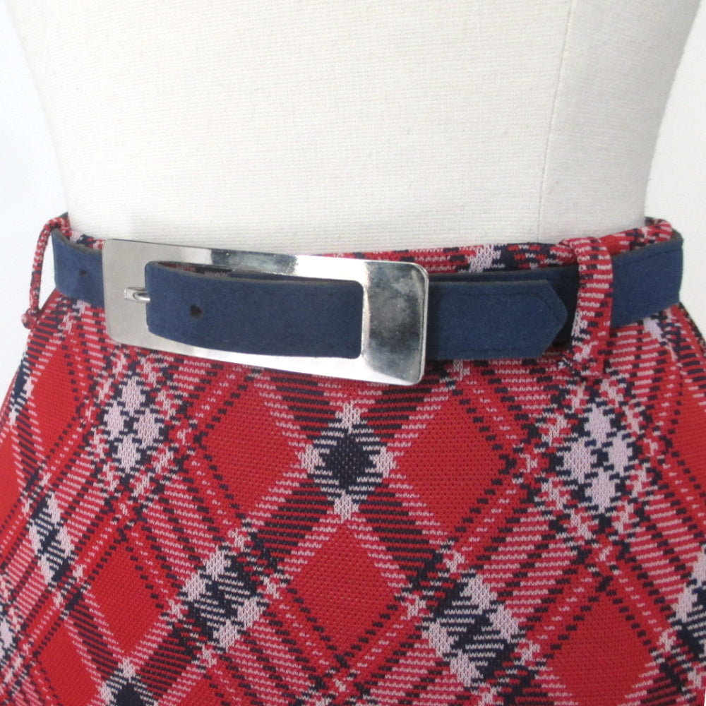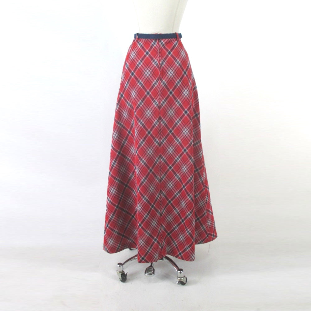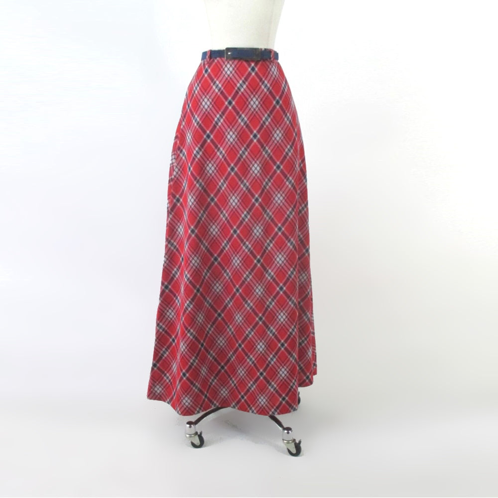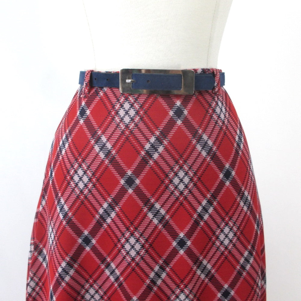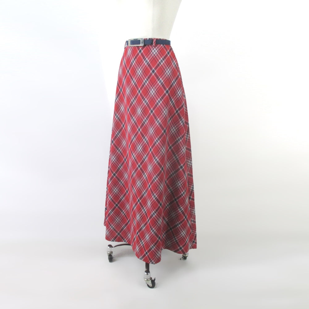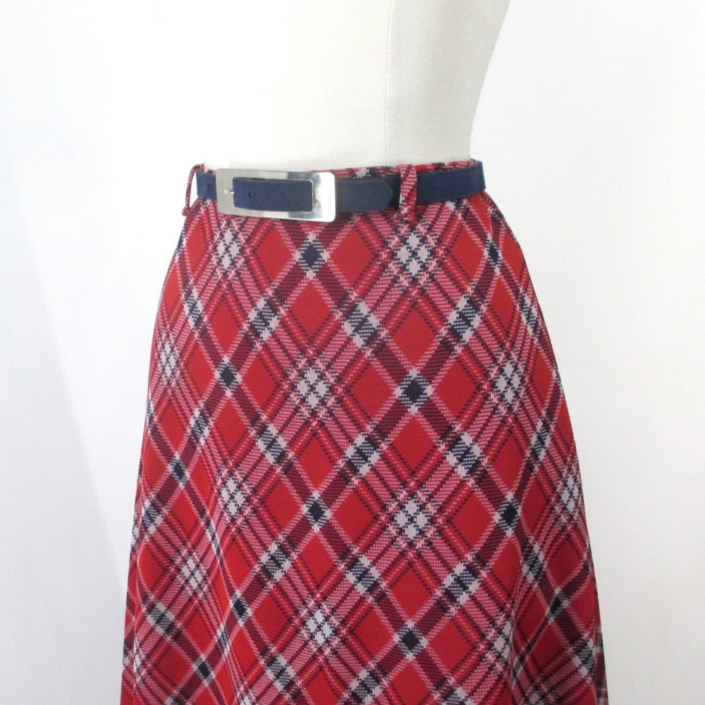Vintage 70s Red Plaid Maxi Skirt Matching Belt Set S