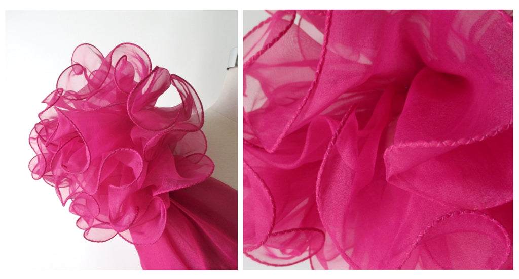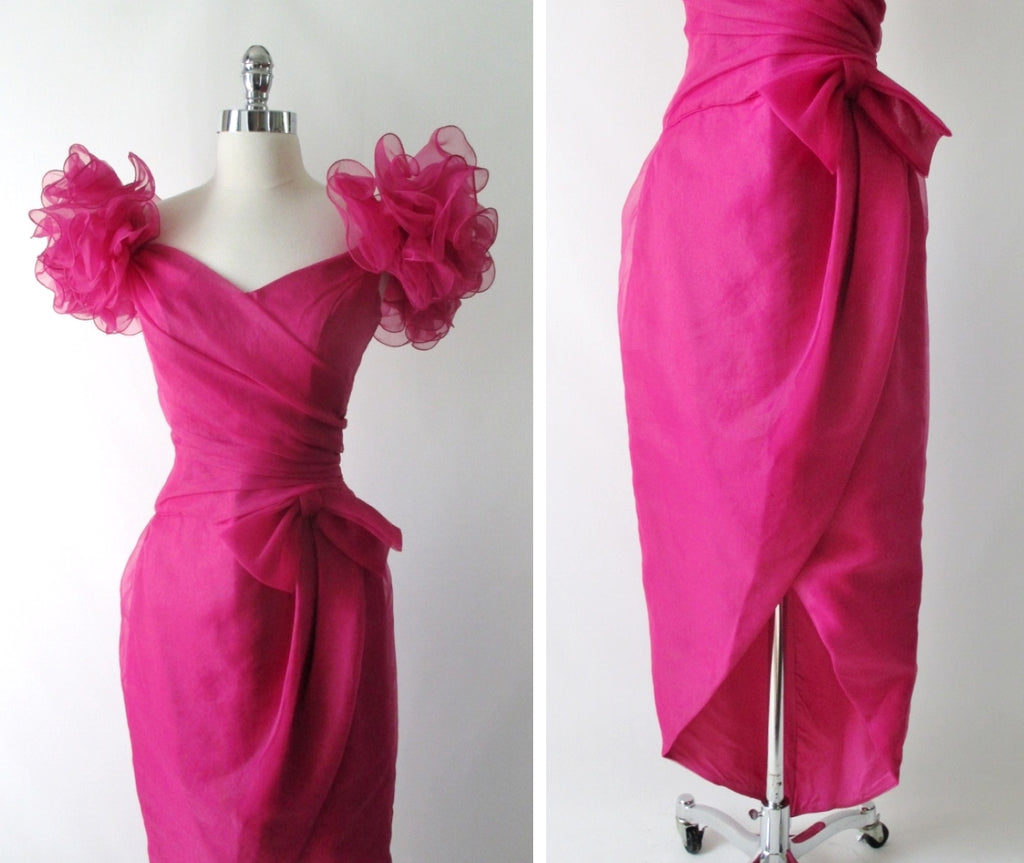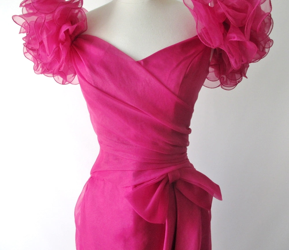 Vintage 80's Magenta Puff Shoulders Party Gown Dress S