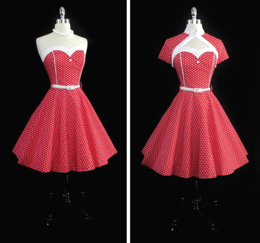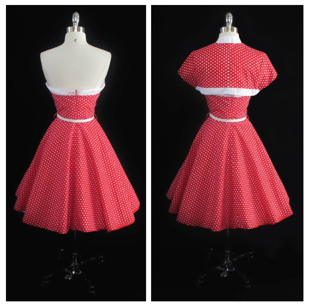 • Vintage 50's Look Red Polka Dot Fit & Flare Dress Matching Bolero L / 14