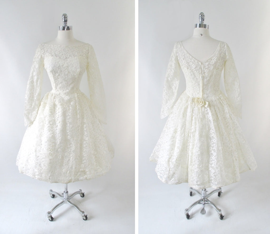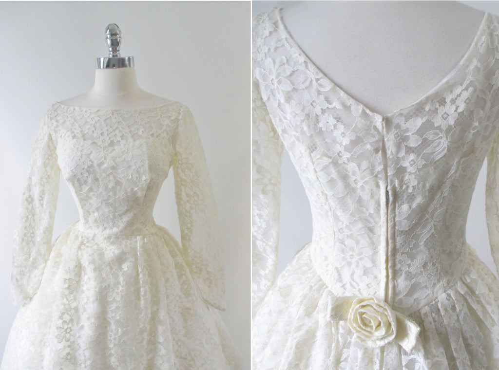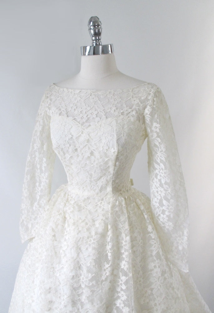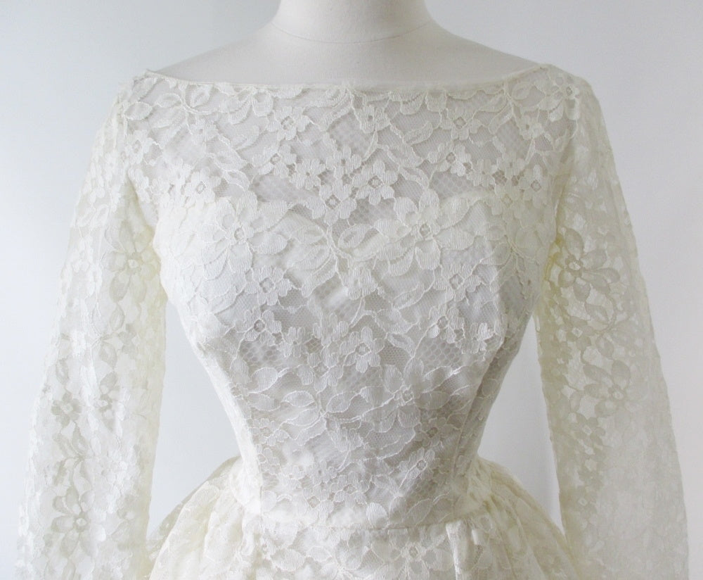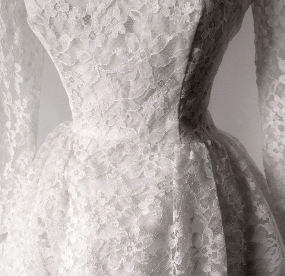 Vintage 60's Ivory White Lace Full Skirt Wedding Dress M