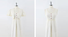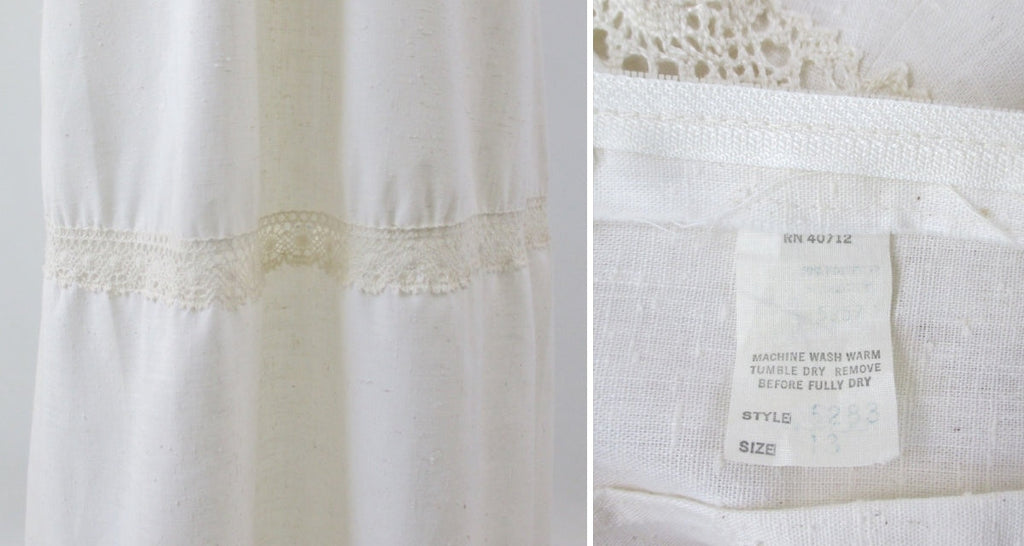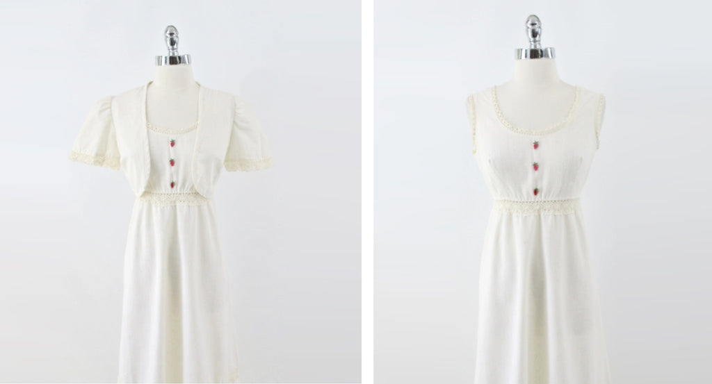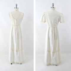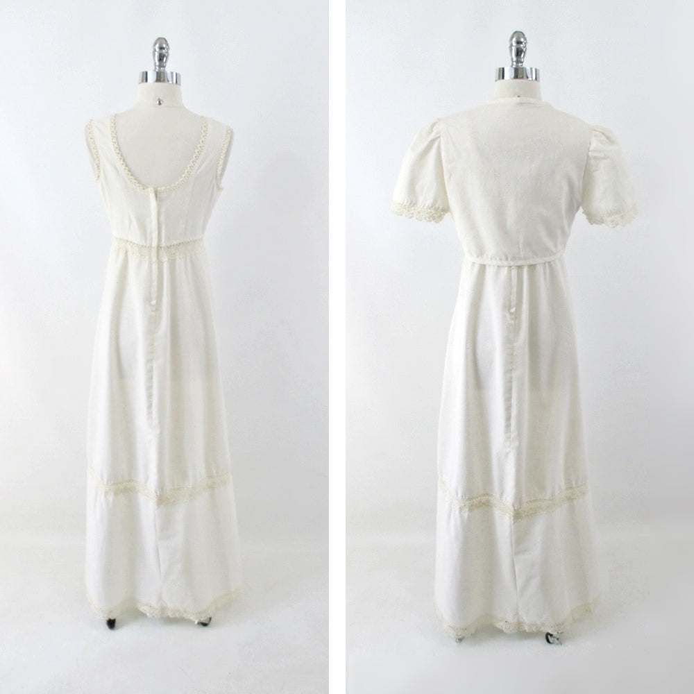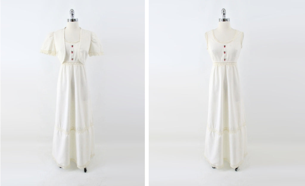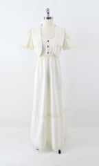 Vintage 70s Natural Cotton Crochet Lace Prairie Maxi Dress & Bolero M