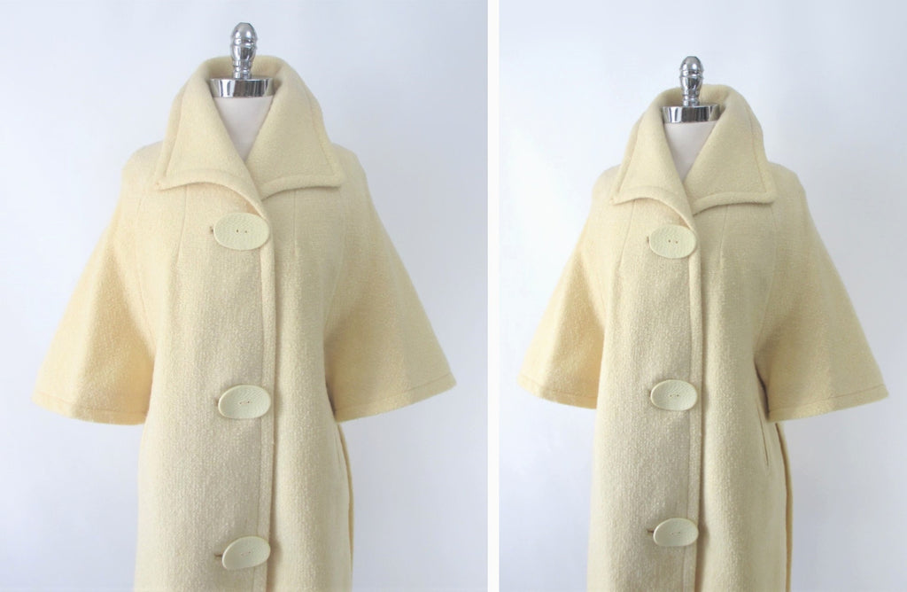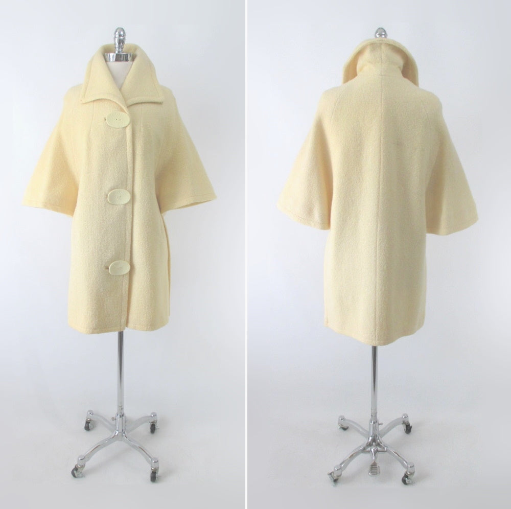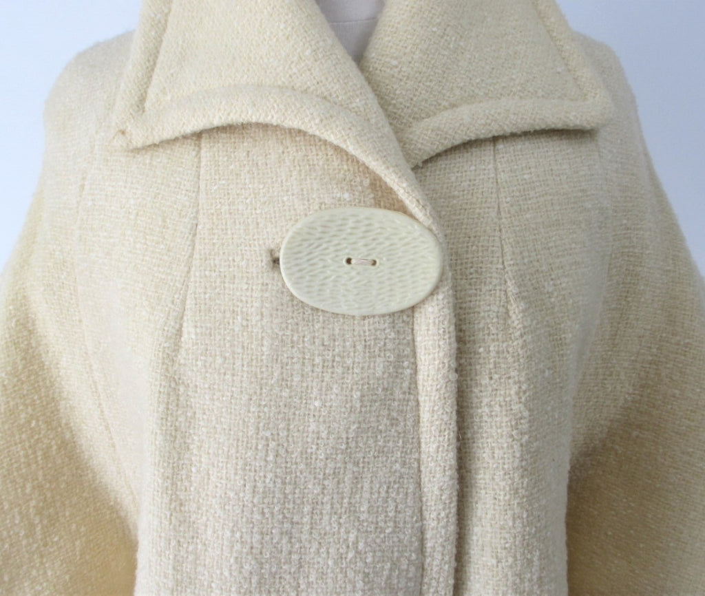 Vintage 60's Cream Big Button Bell Sleeve Mod Coat / Jacket M