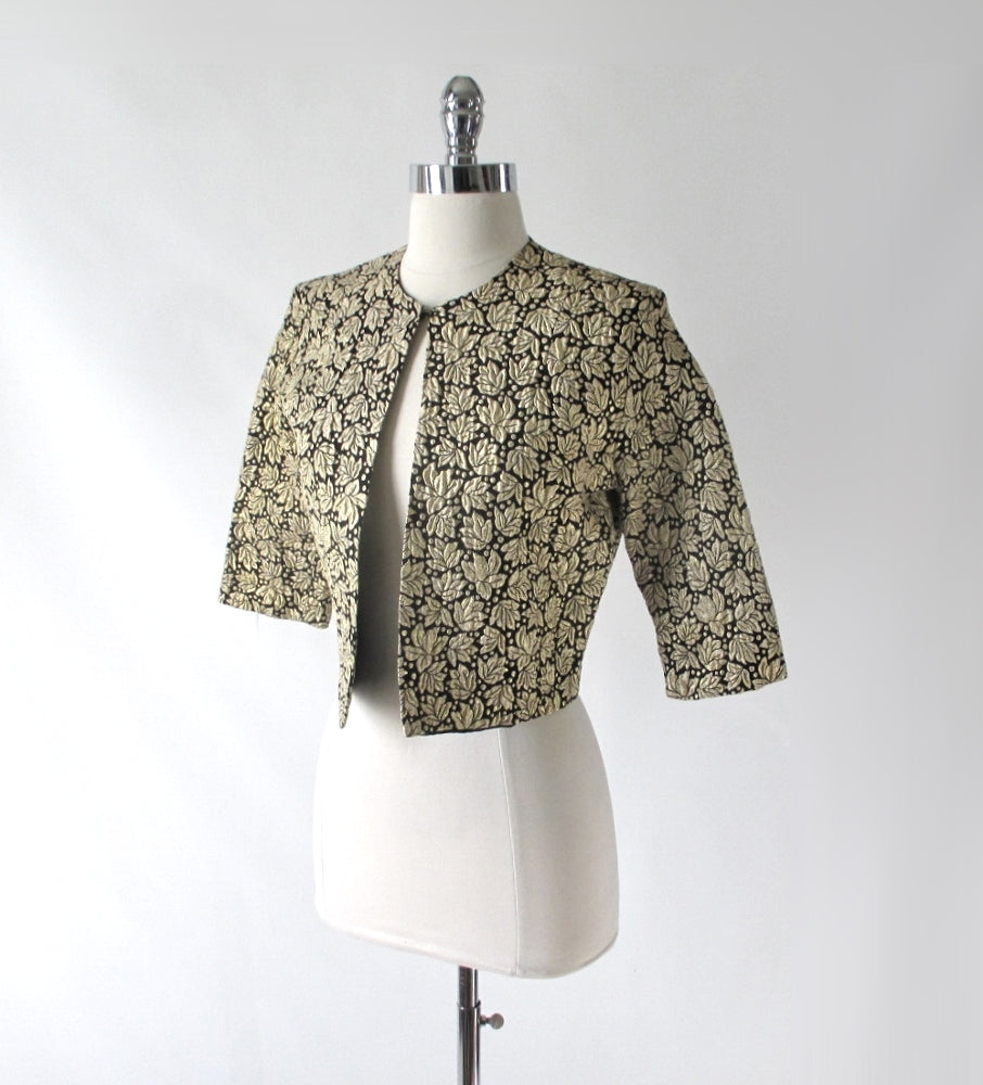 Vintage 60s Gold Lame Jaquard Evening Bolero Jacket S