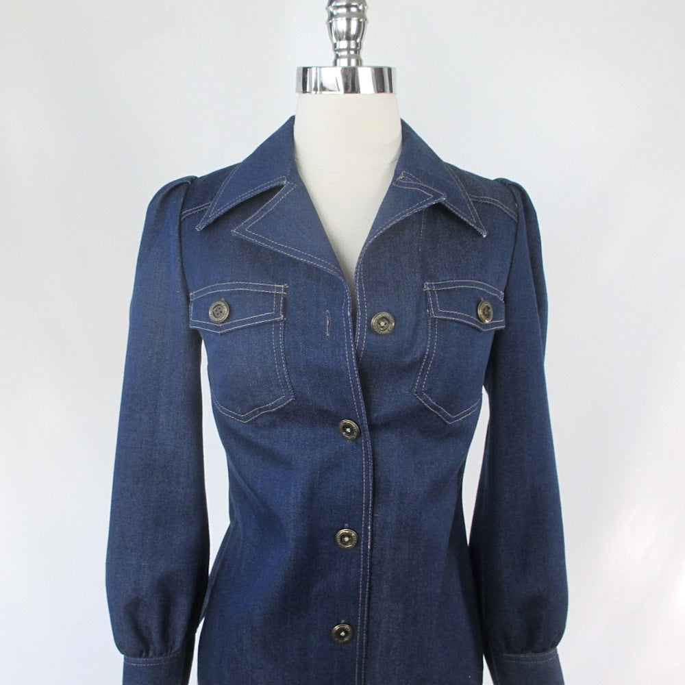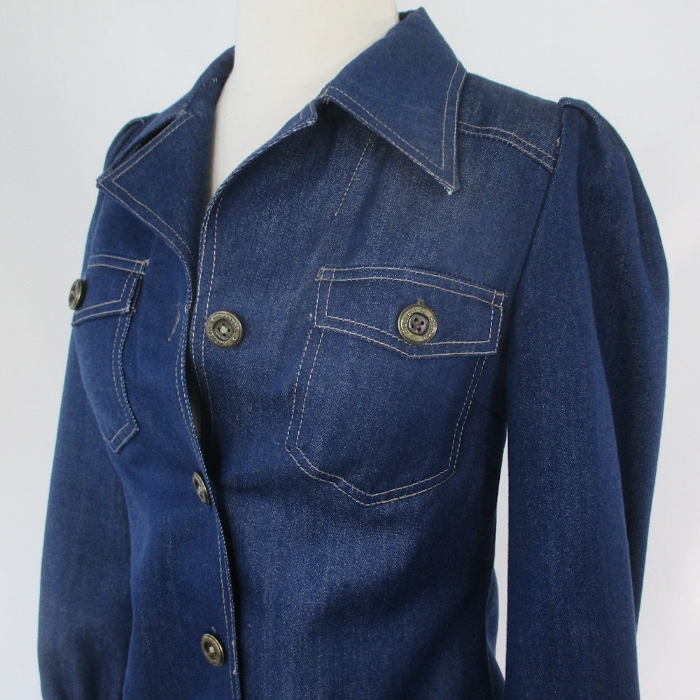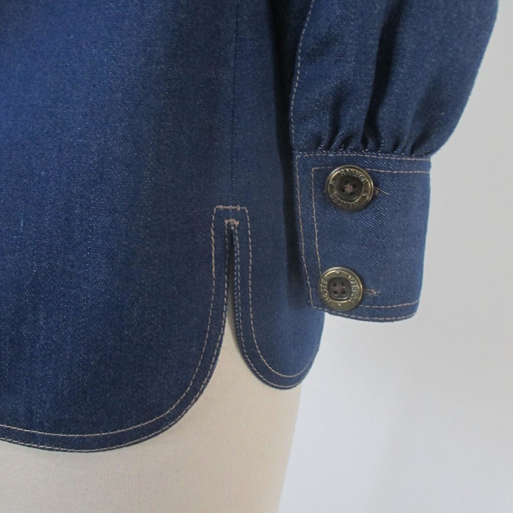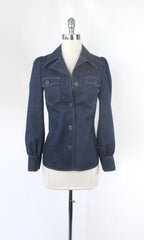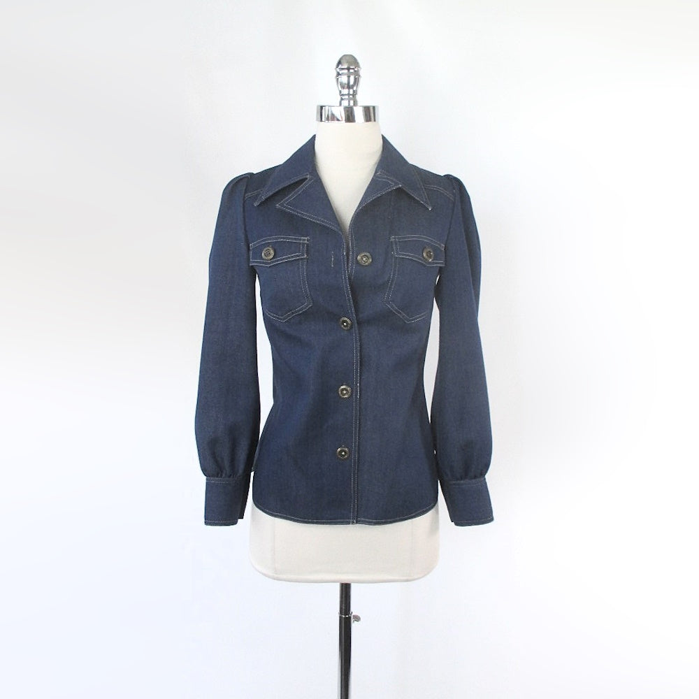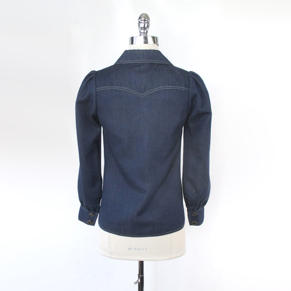 Vintage 70s Denim Western Puff Sleeve Shirt | Jacket XS