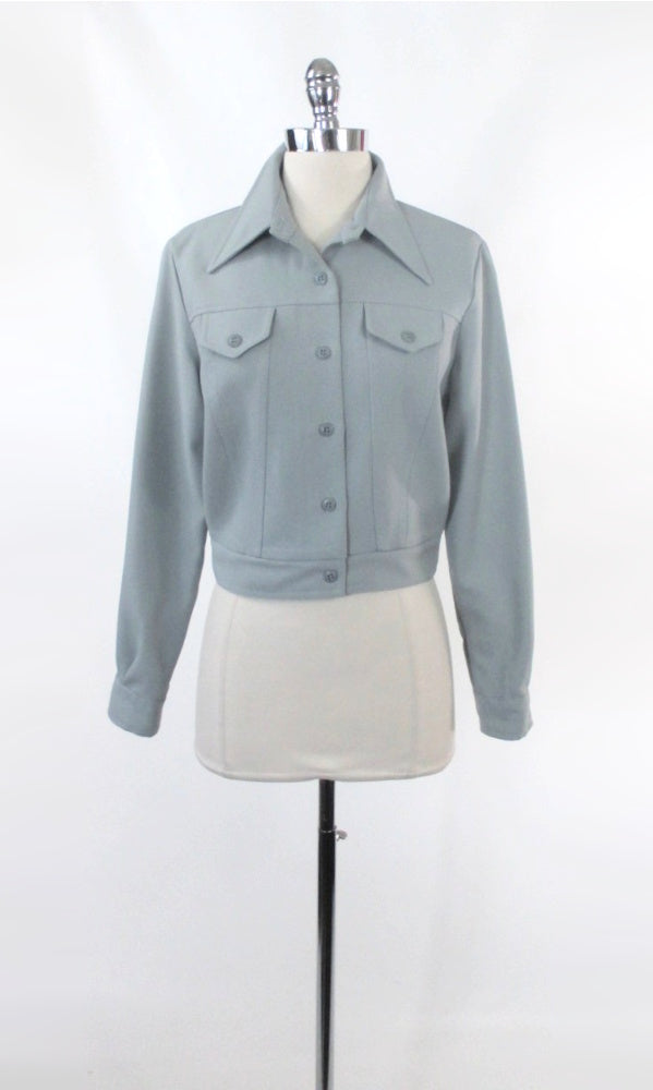 Vintage 70s Steel Blue Cropped Trucker Jacket M