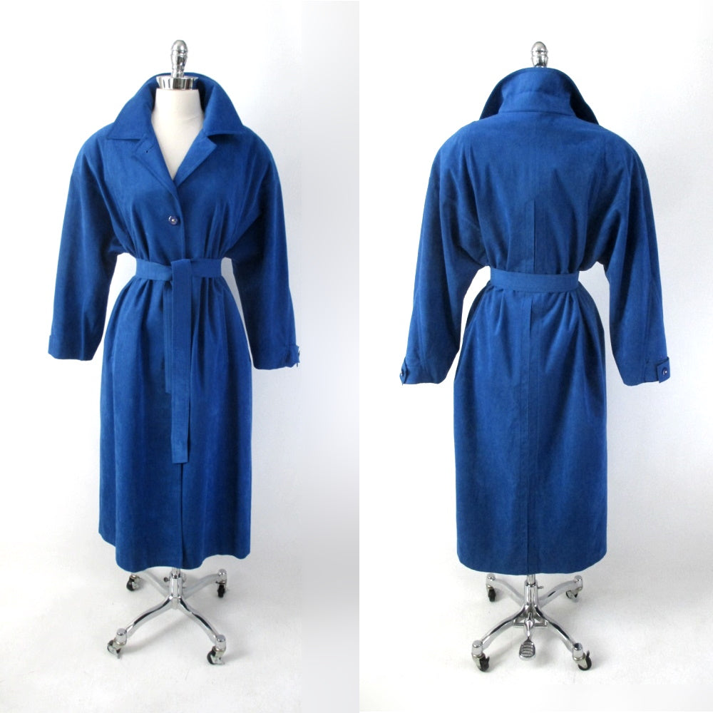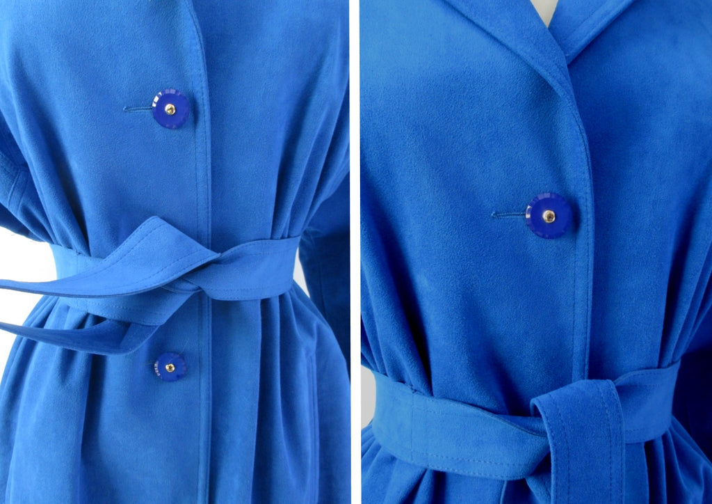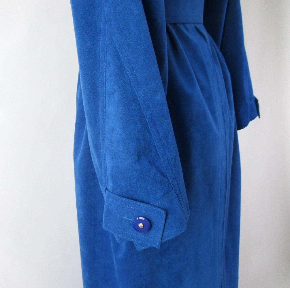 Vintage 80s Electric Blue Ultrasuede Trench Coat Jacket M