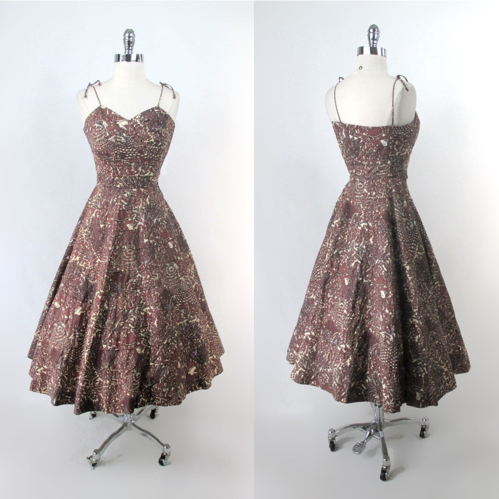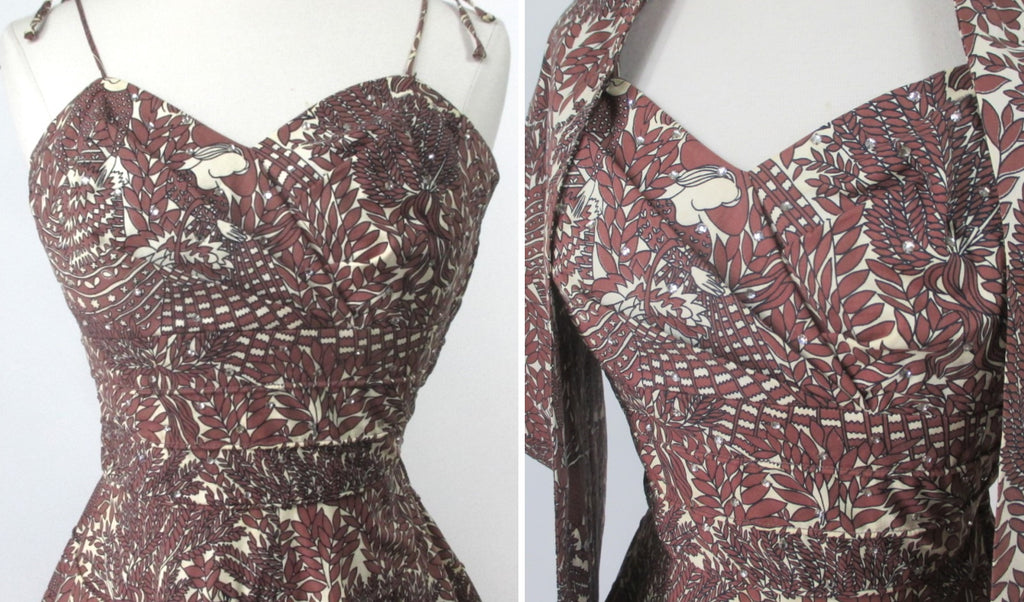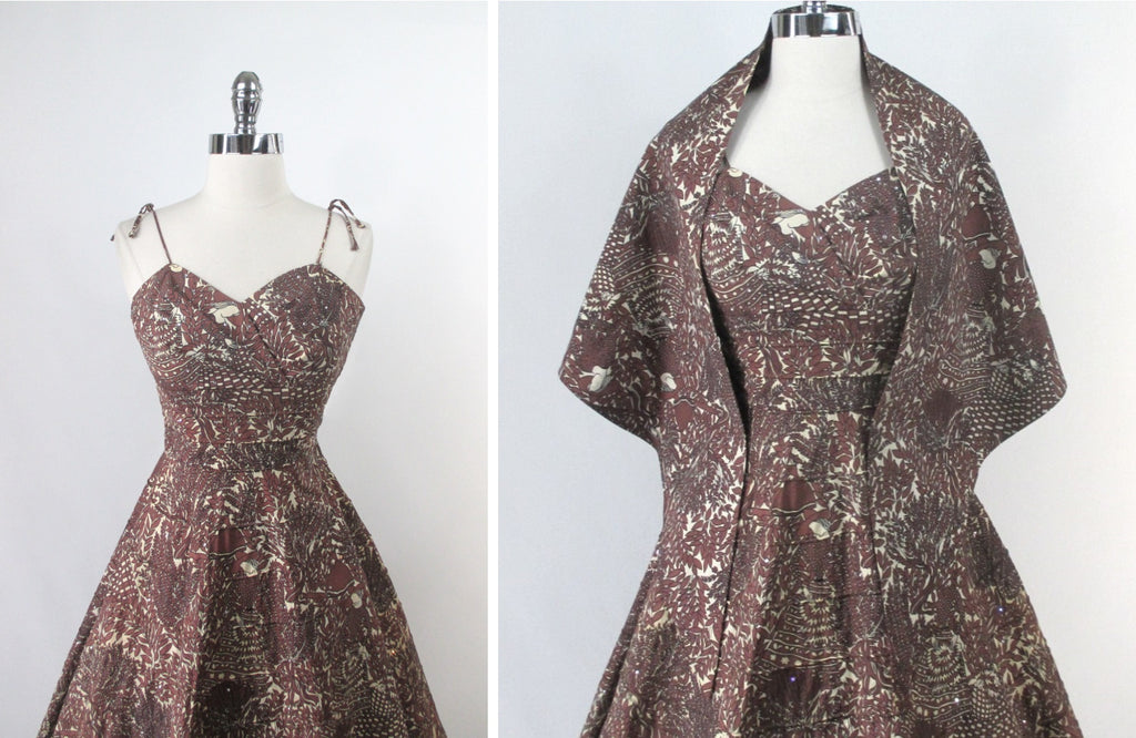 Vintage 50s Novelty Print Dress Matching Wrap / Shawl XS / XXS