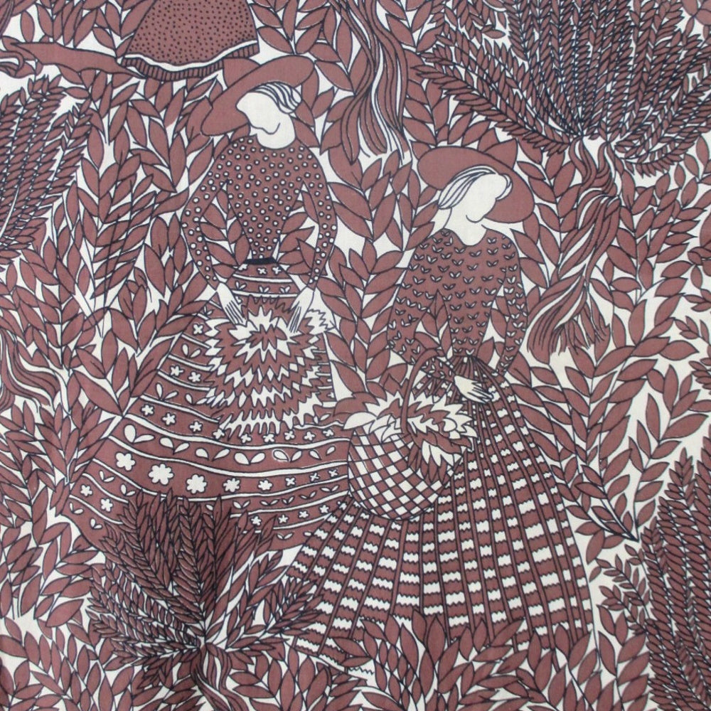 Lovely print of ladies harvesting in reddish-brown and off white.