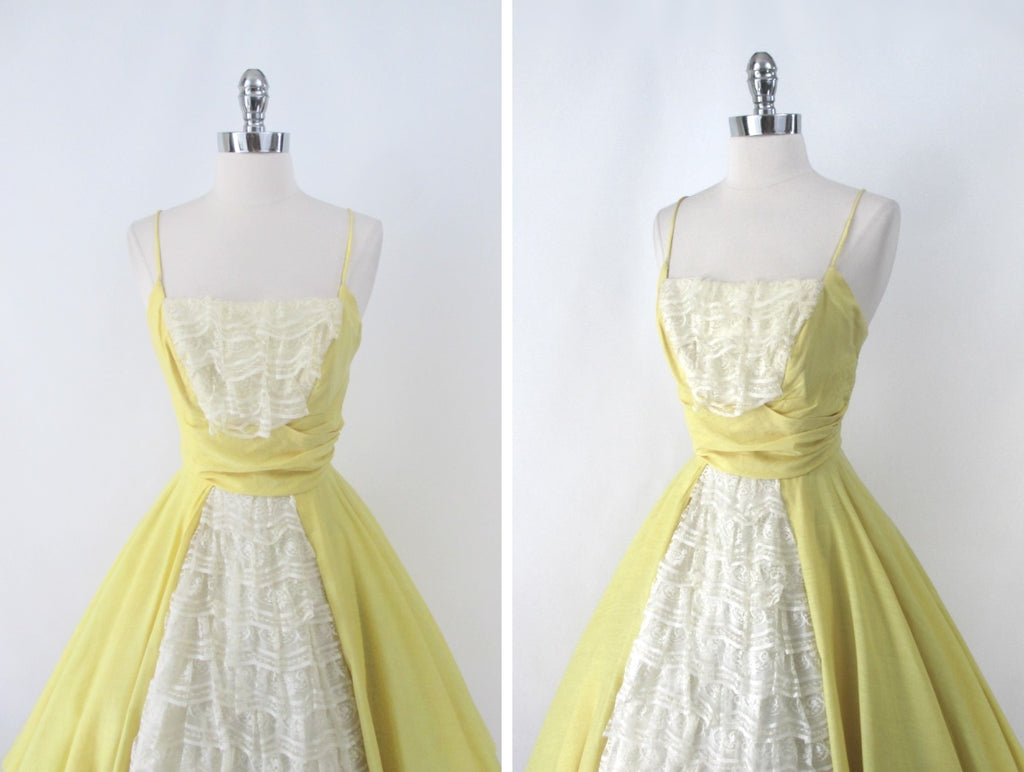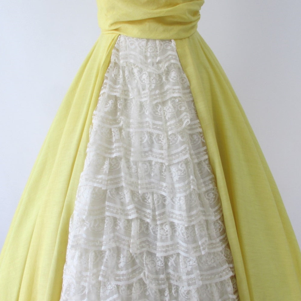 Vintage 50s Sunny Yellow & Lace Lilli Diamond Party Dress XS