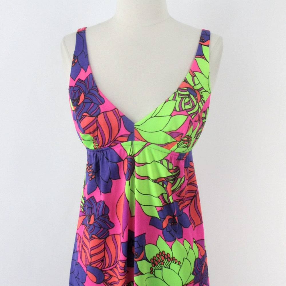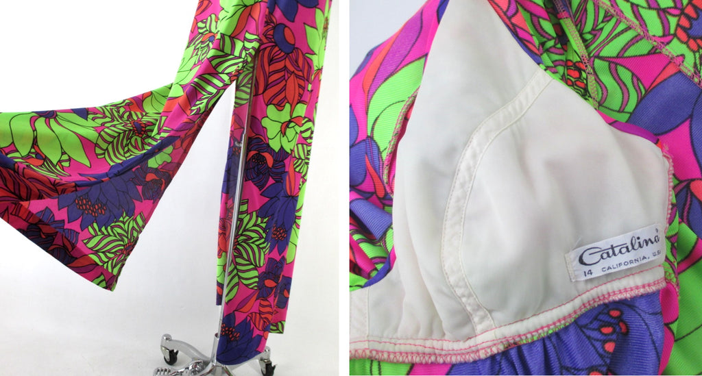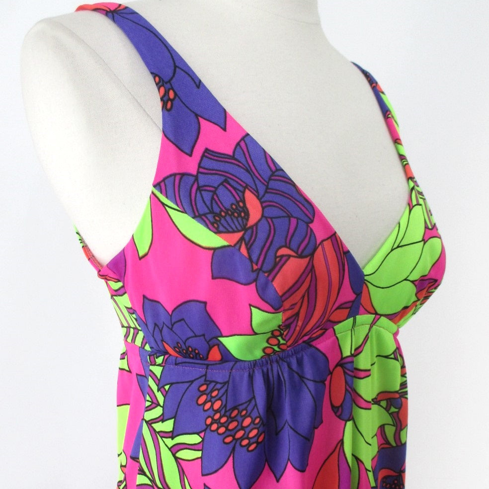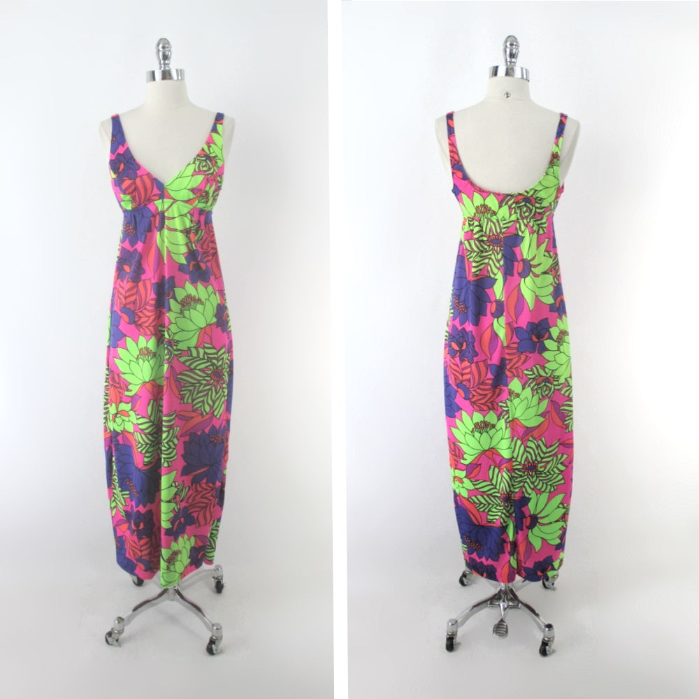 Vintage 60s Catalina Psychedelic Flower Power Maxi Dress XS