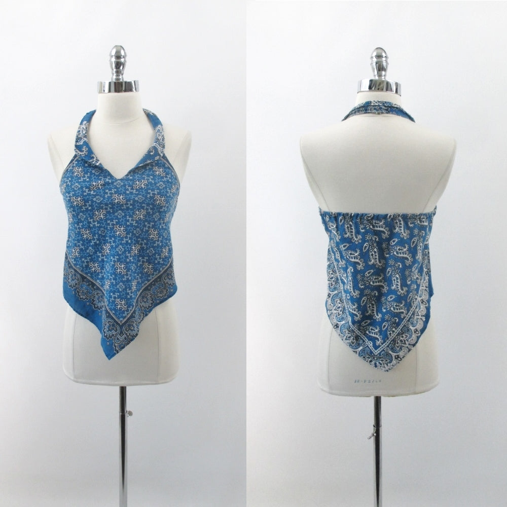 Vintage 70s Bohemian Bandanna Style Halter Top XS