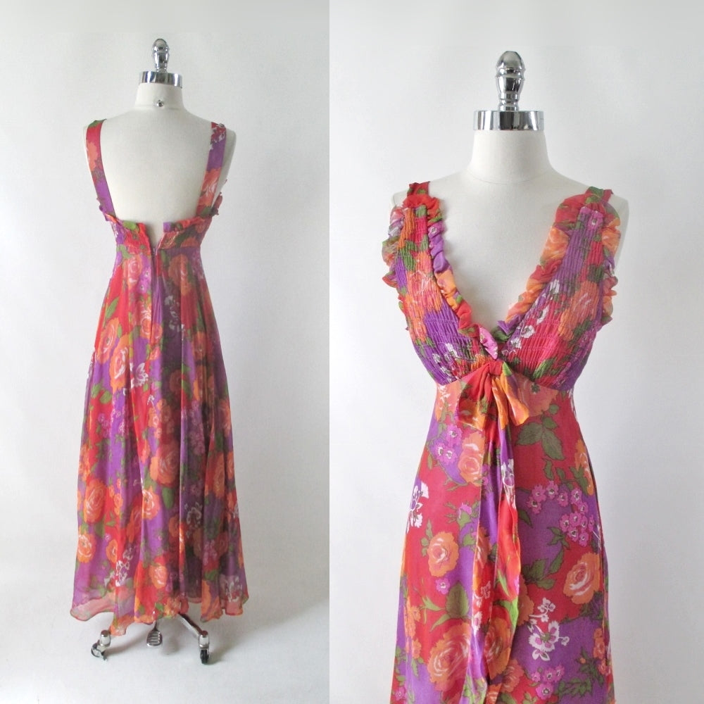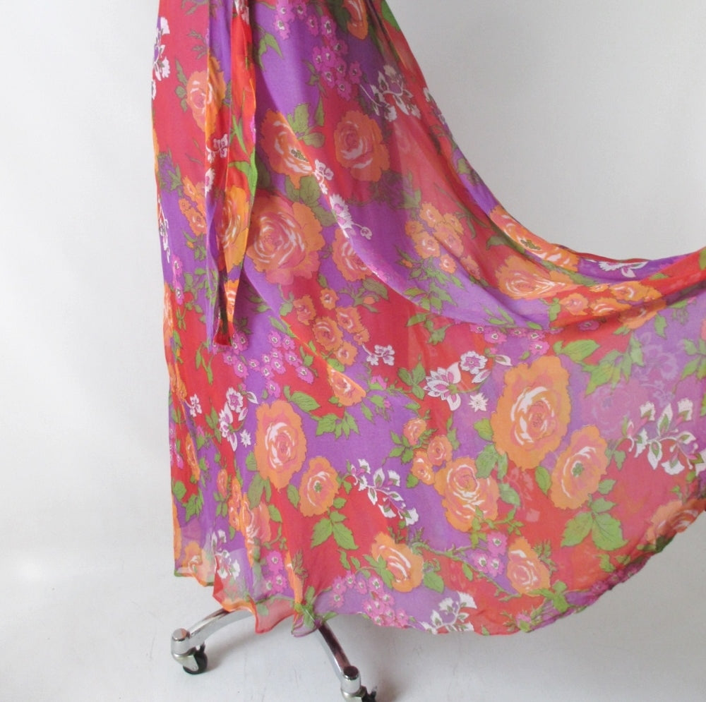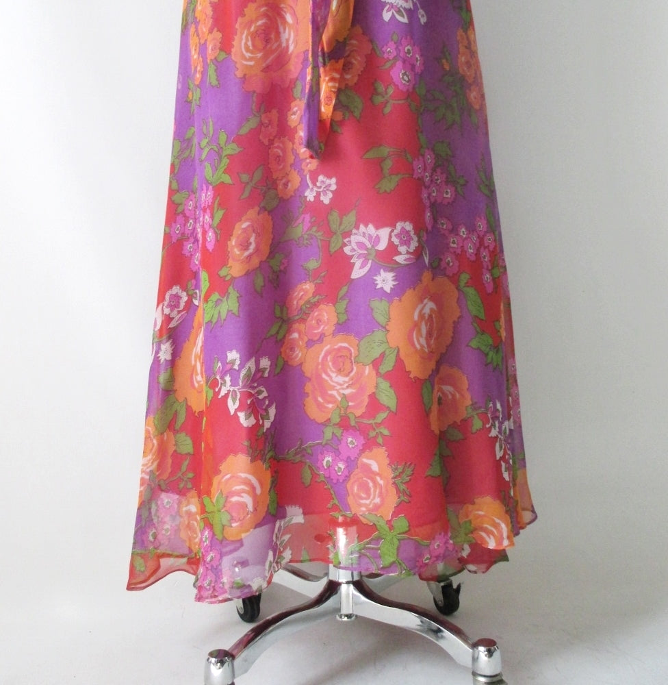 Vintage 70s Rose Garden Chiffon Maxi Party Dress XS