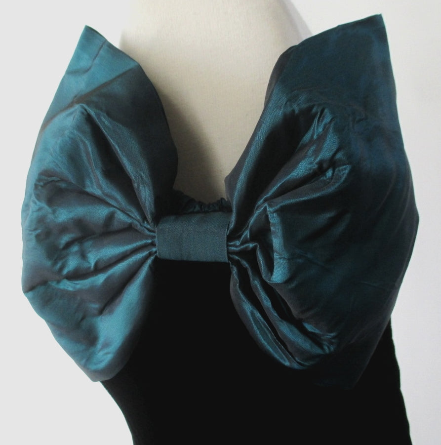Off-the-shoulder, taffeta bows and wraps around your shoulders.