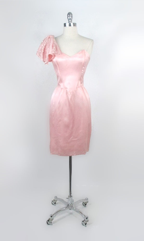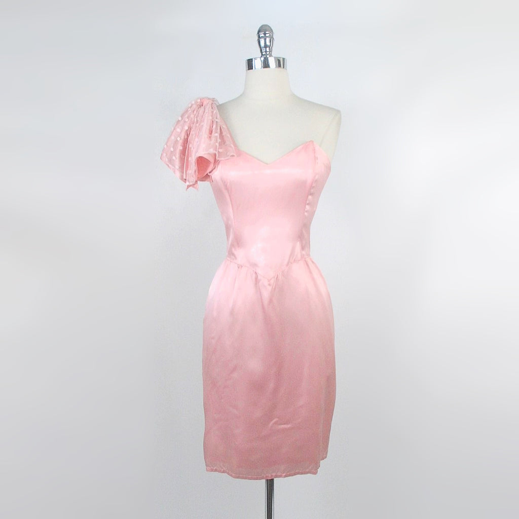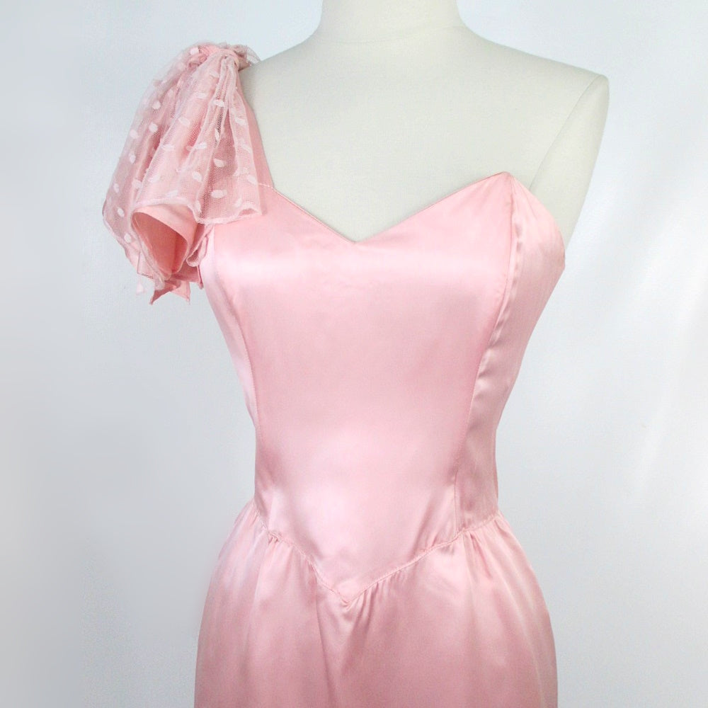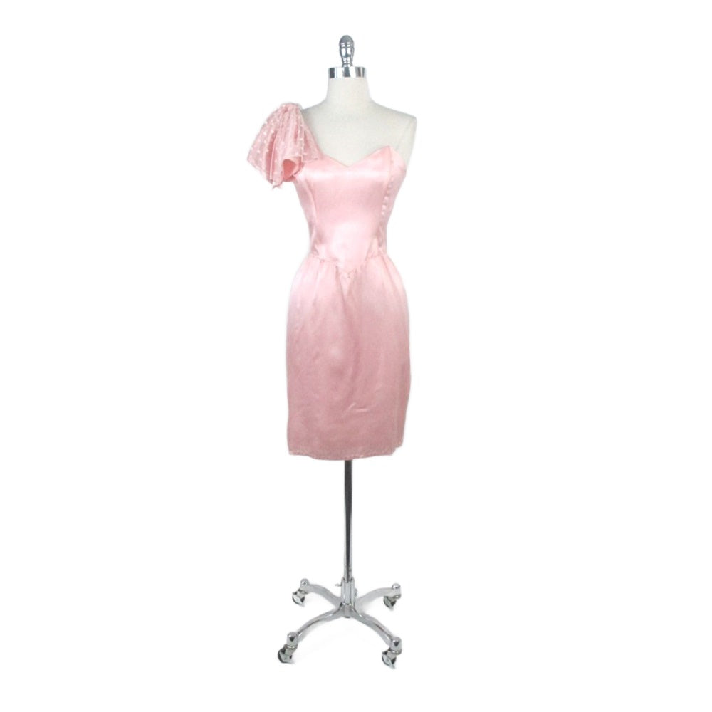 Vintage 80s Pink Satin Gunne Sax Party Dress XS