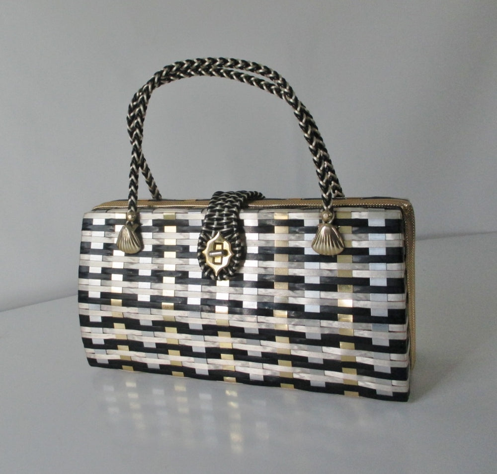 Vintage 60's 60's Metal & Plastic Woven Handbag Basket Bag