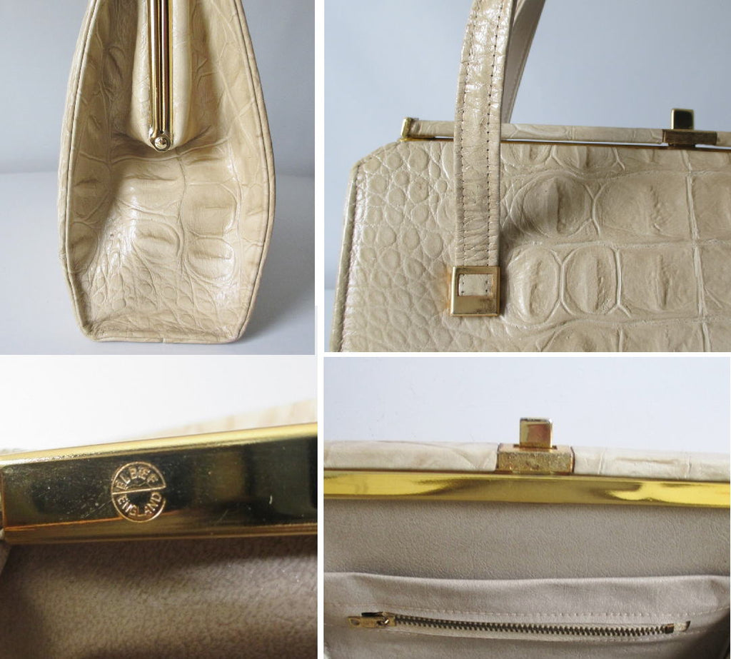 Metal gold frame with hallmark + 1 interior zip pocket + Metal feet