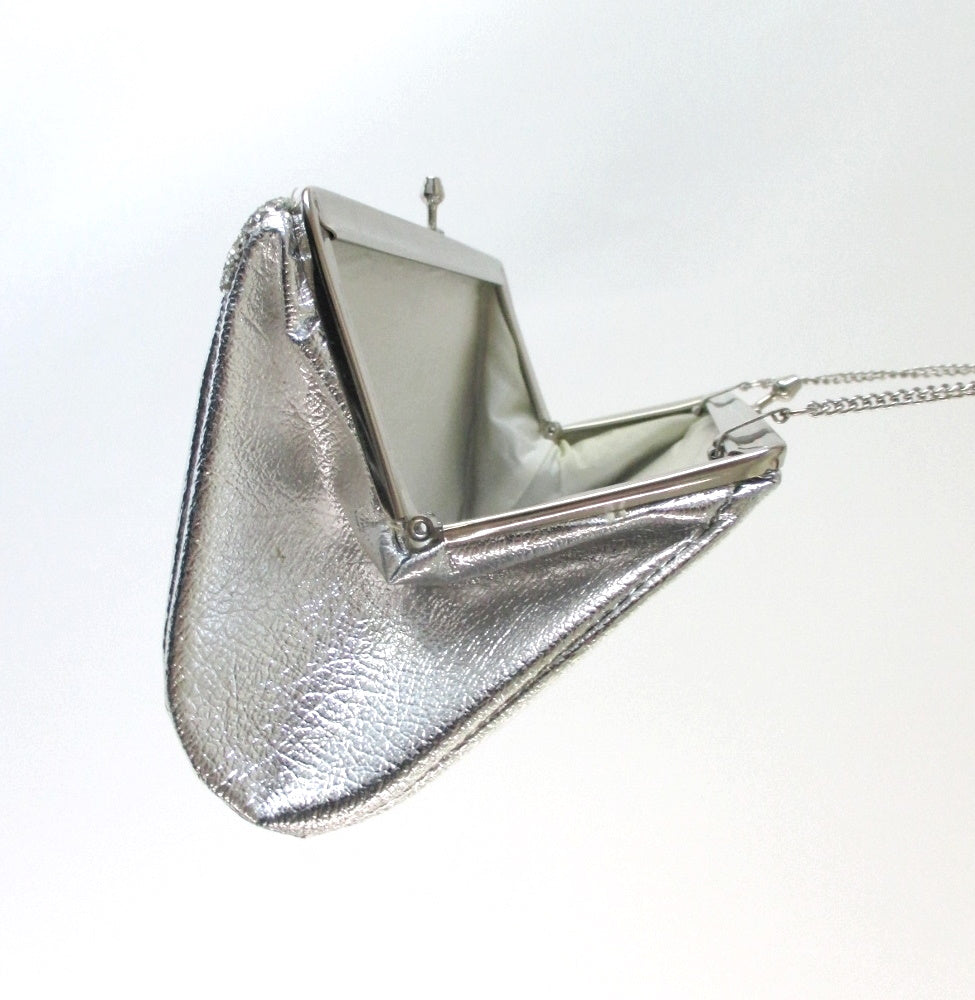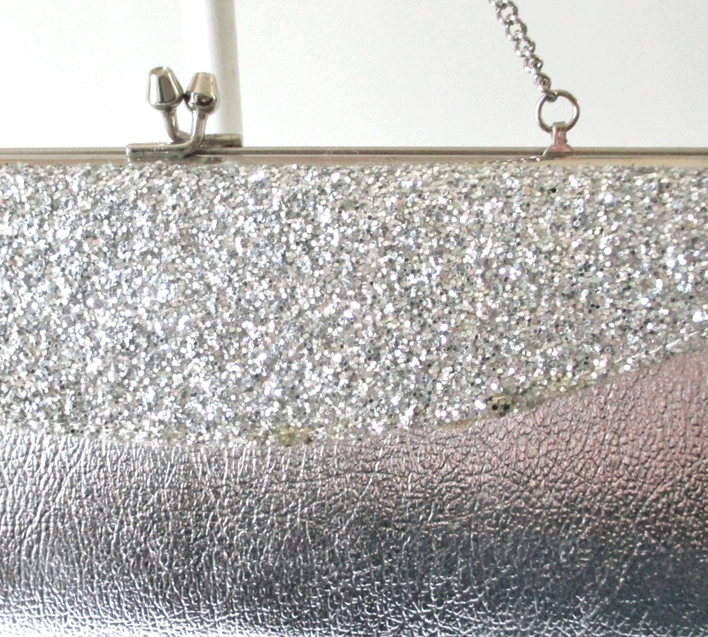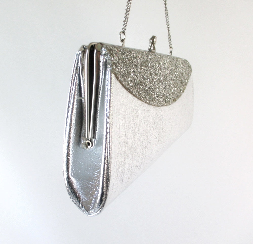 Vintage 60's Silver Glitter Envelope Handbag Clutch Bag