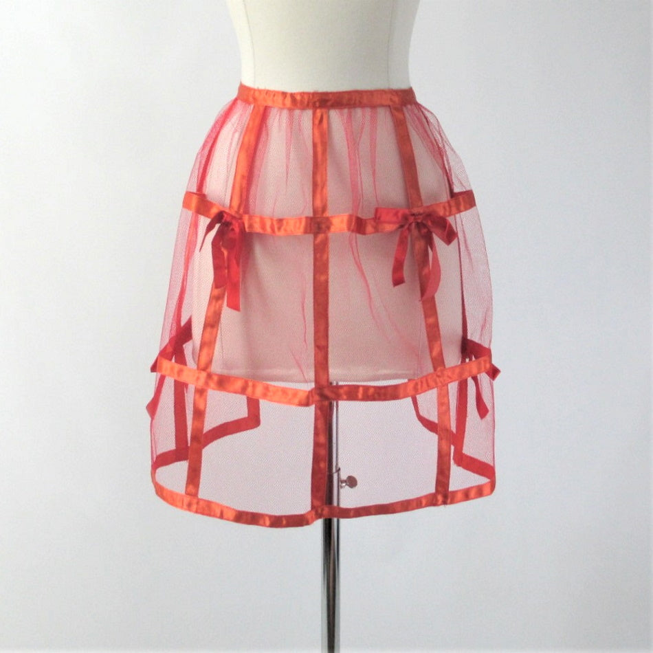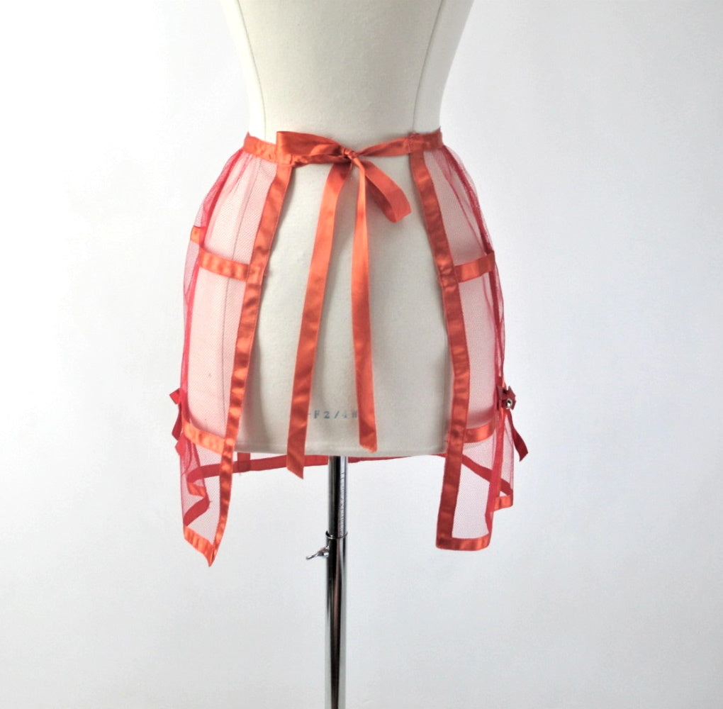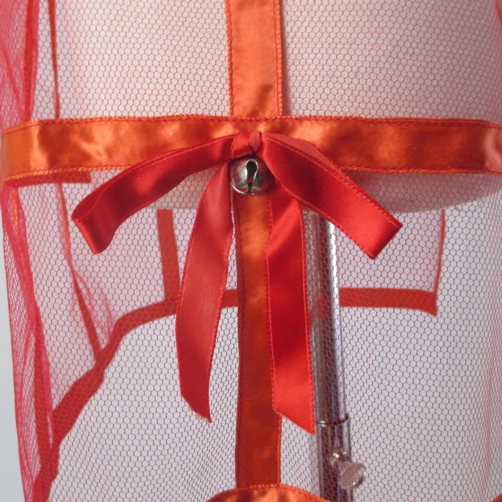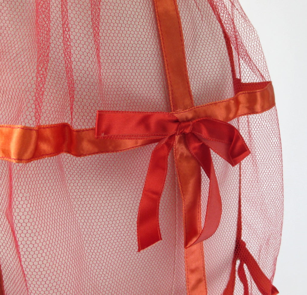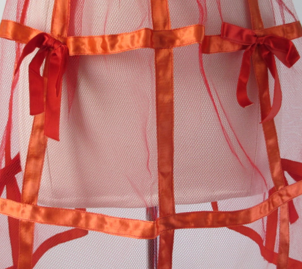 Vintage 50s Red Satin Ribbon Holiday Party Hostess Apron • One Size