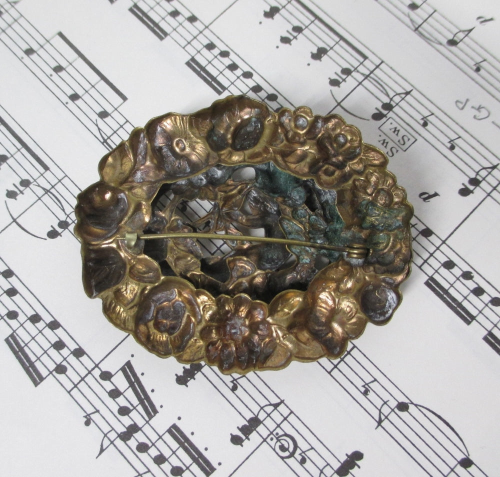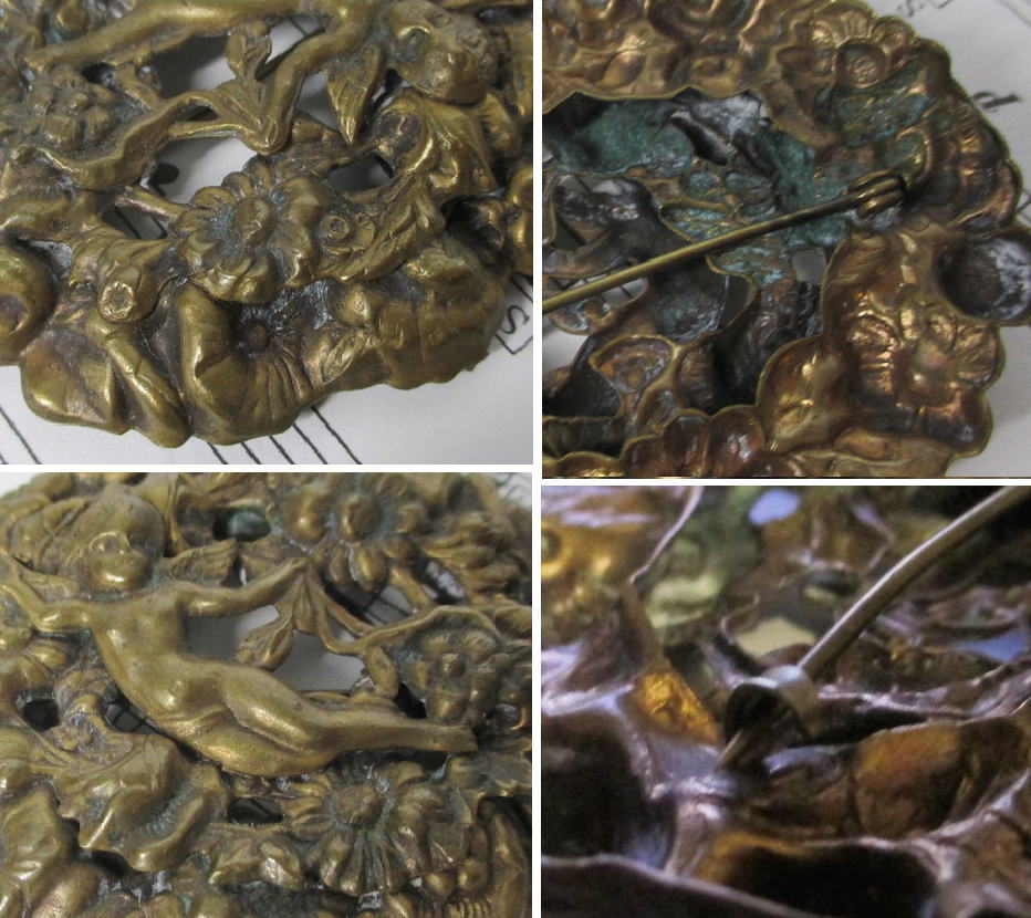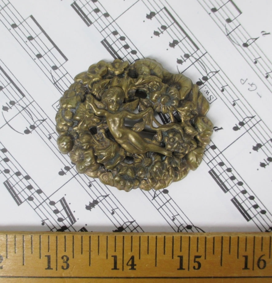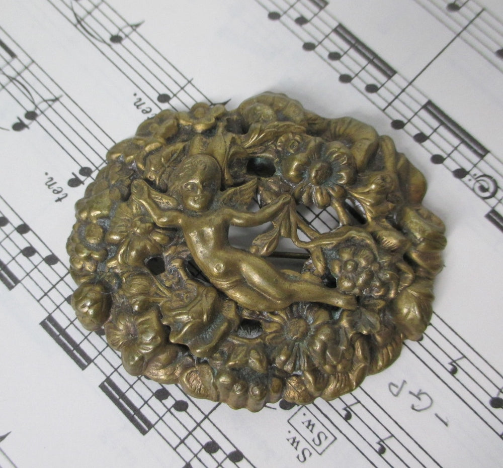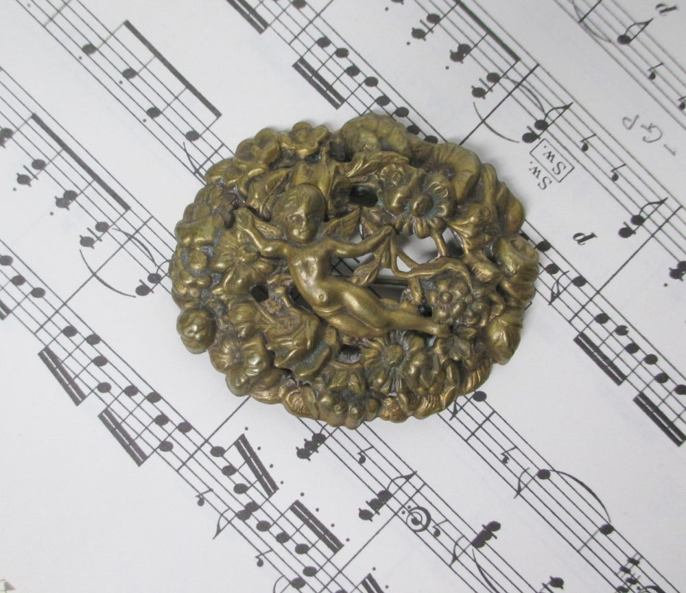 Vintage 30's Brass Cherub / Angel Brooch Pin