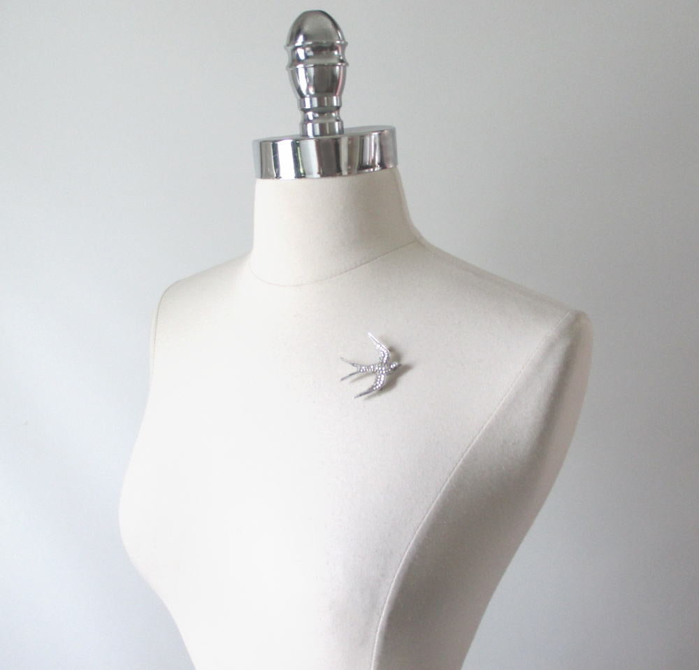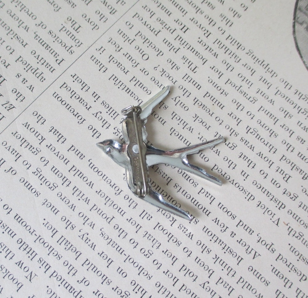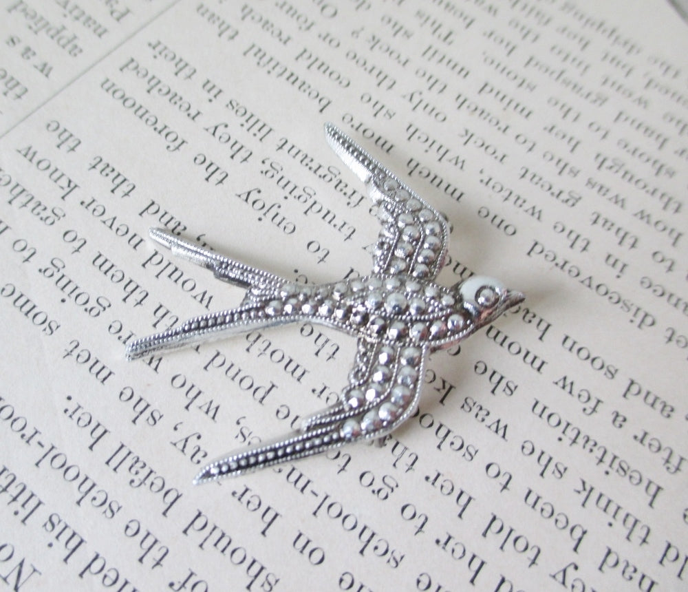 Vintage 40's Cut Steel Silver Sparrow Brooch Pin Germany
