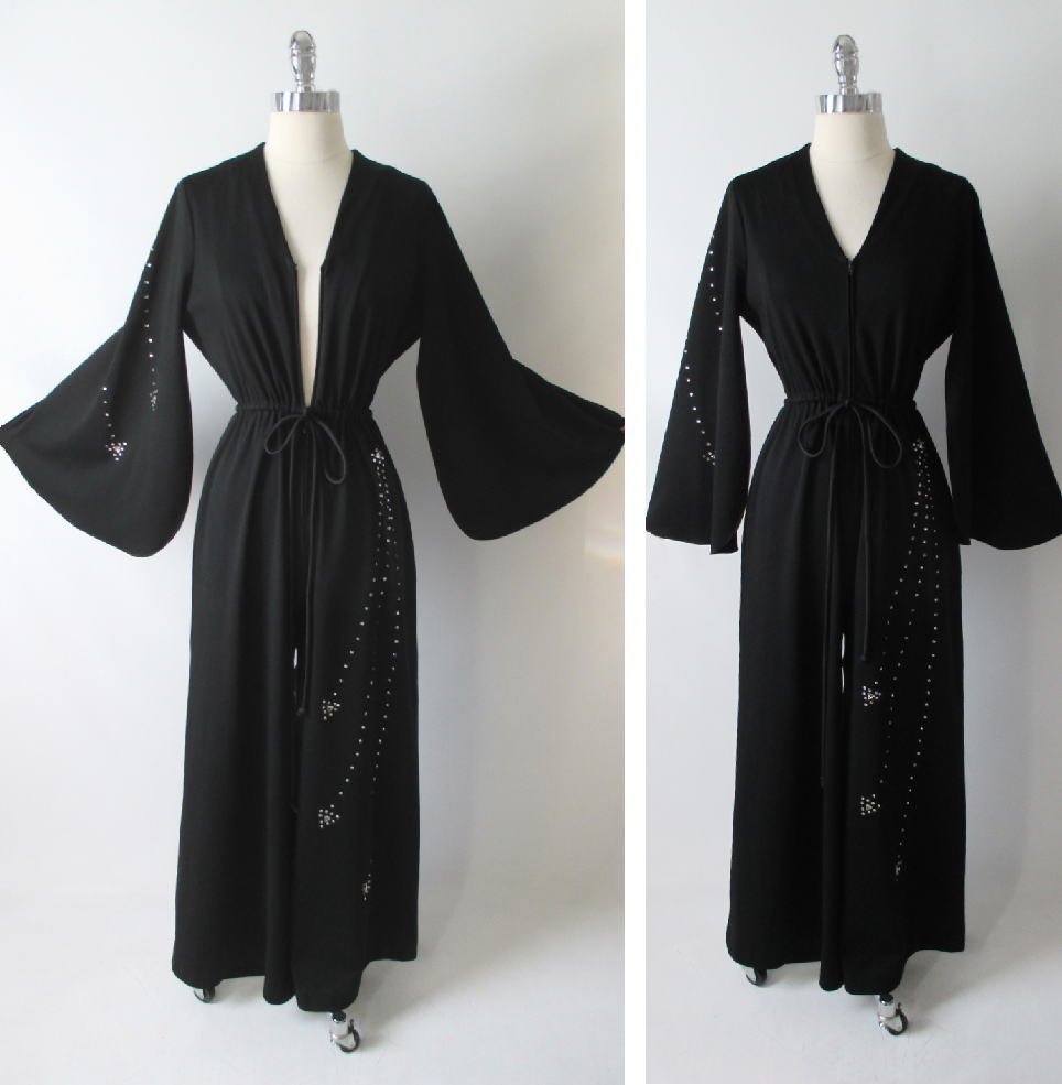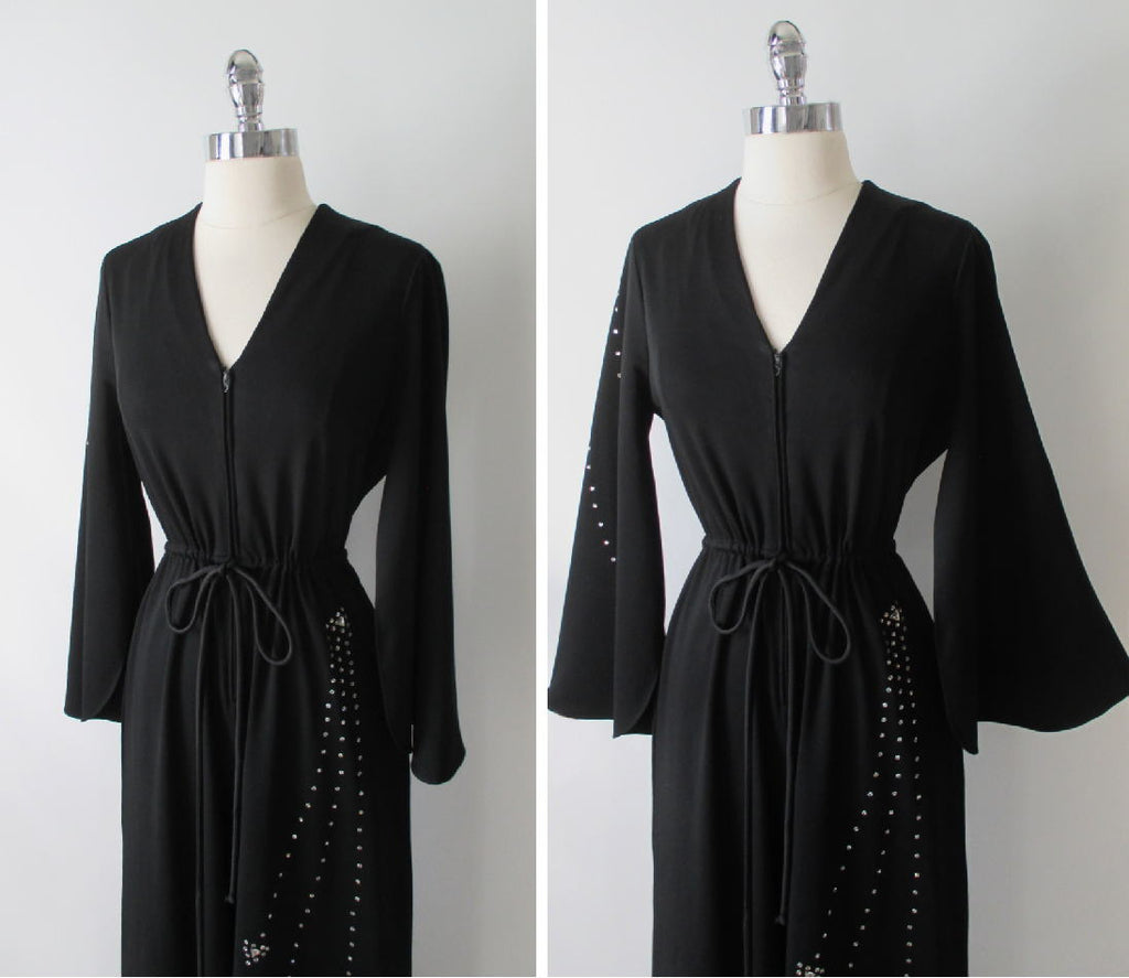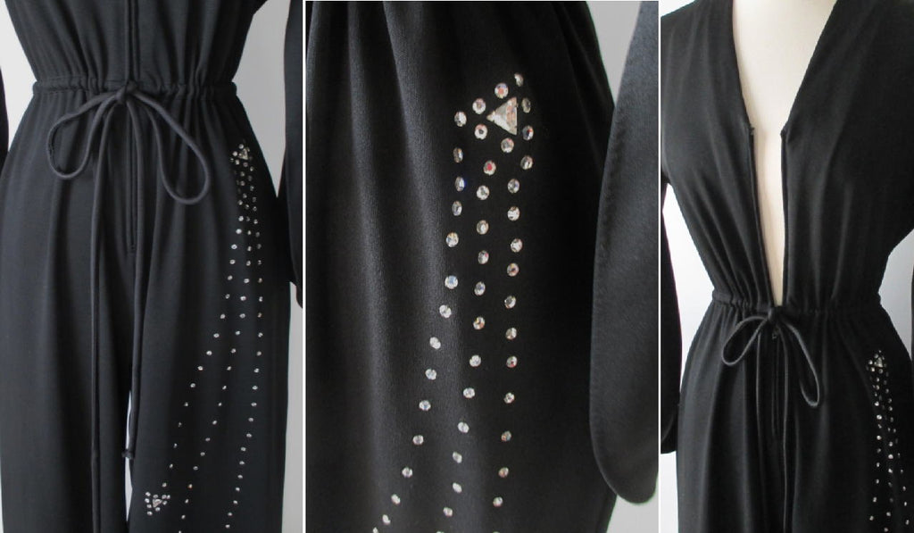 Vintage 70's Black Rhinestone Palazzo Pants Jumpsuit M L