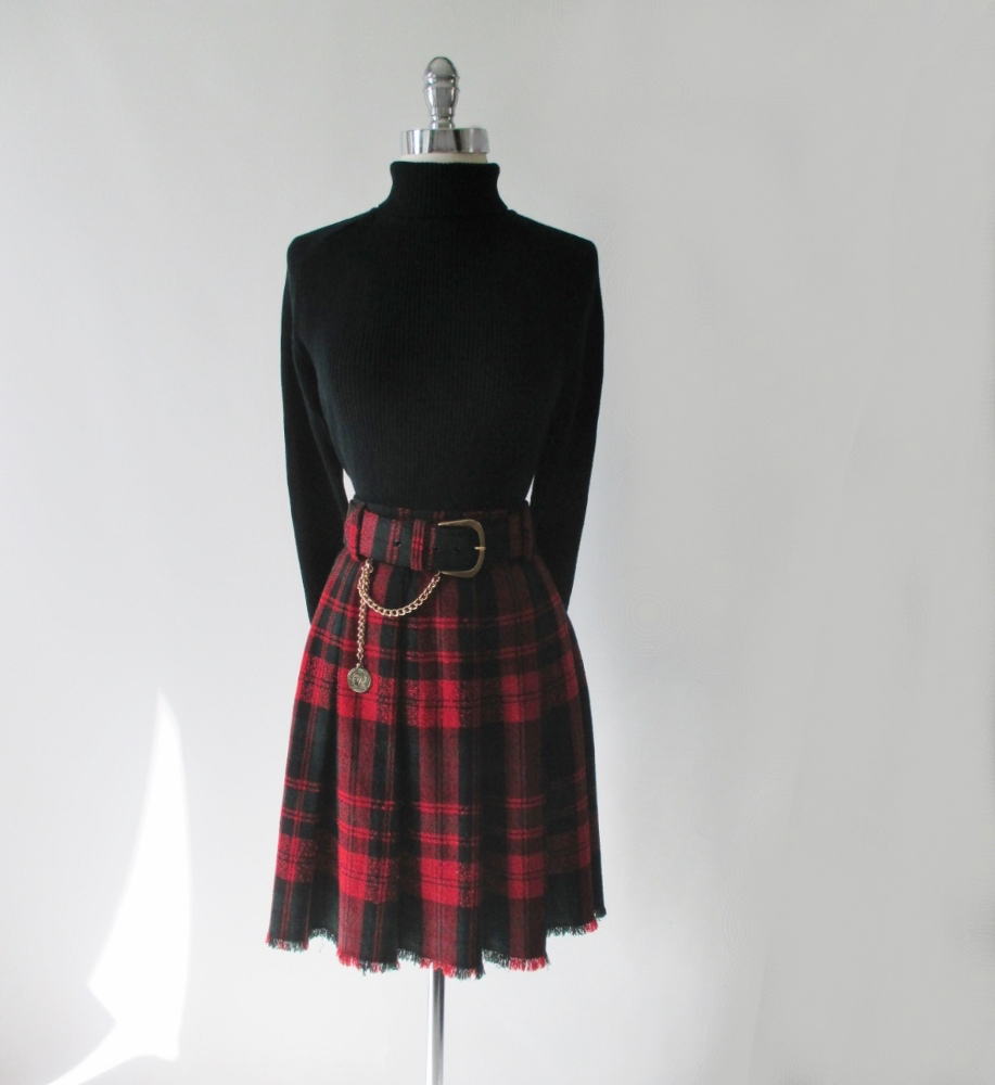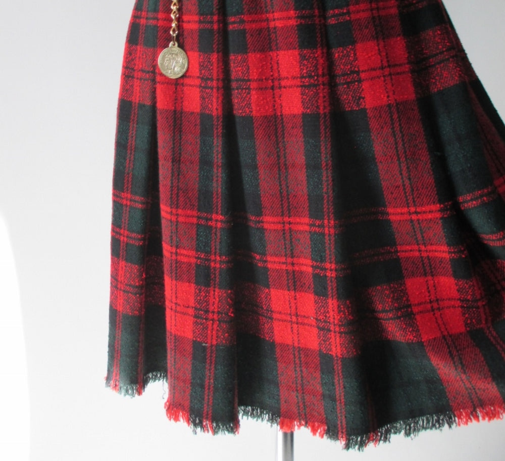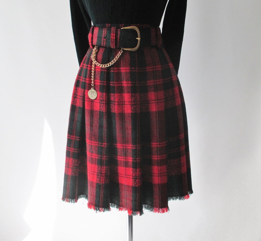 Vintage Tartan Plaid Skirt Gold Chain Belt L