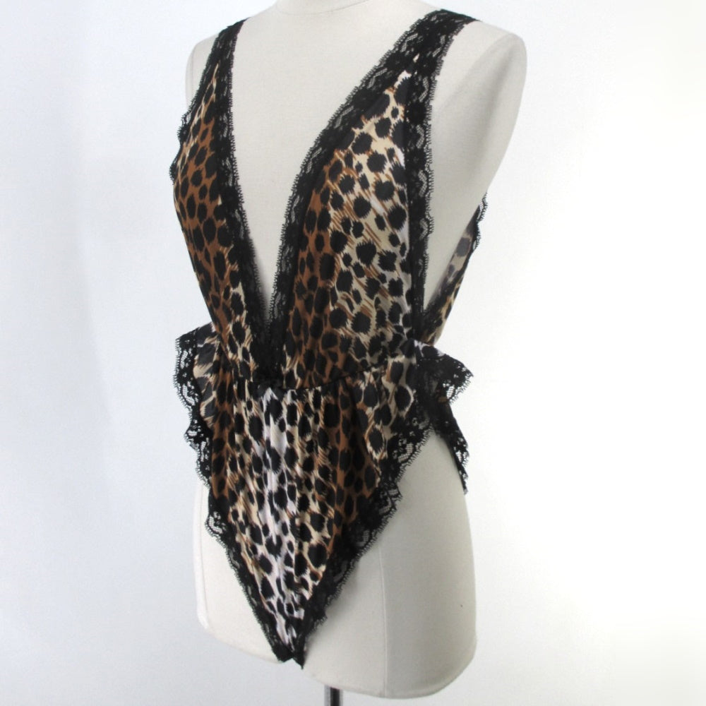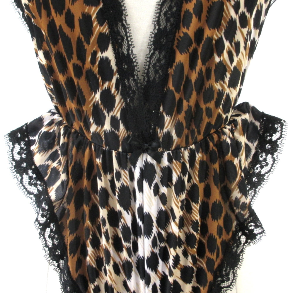 Vintage 80's High French Cut Black Lace Leopard Teddy S NOS