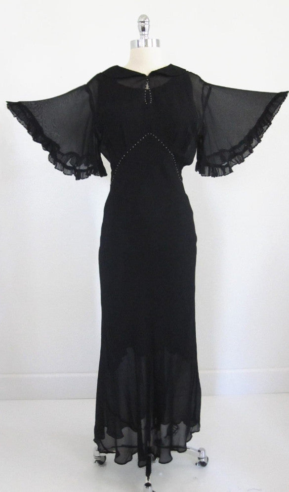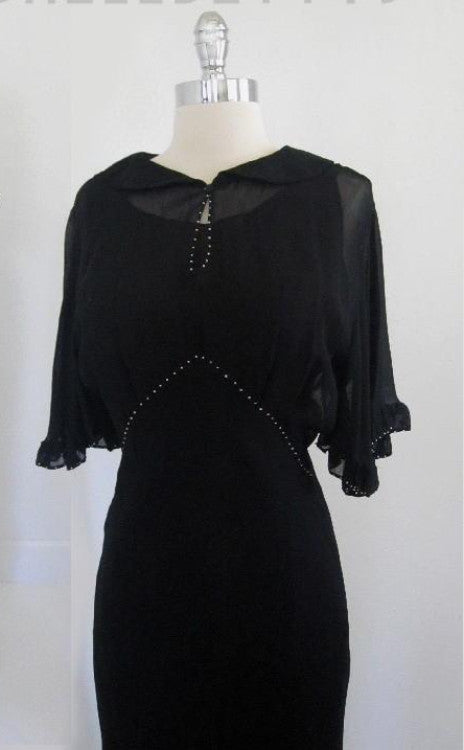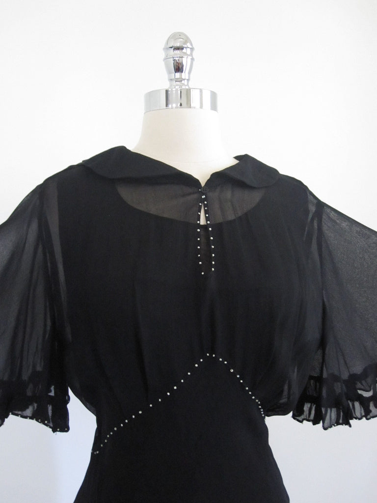 Vintage 90's Meets 30s Inspired Old Hollywood Black Sheer Dress Evening Gown M