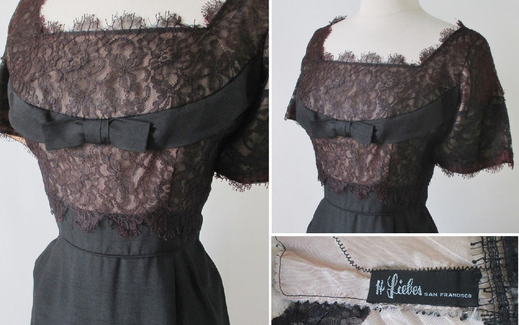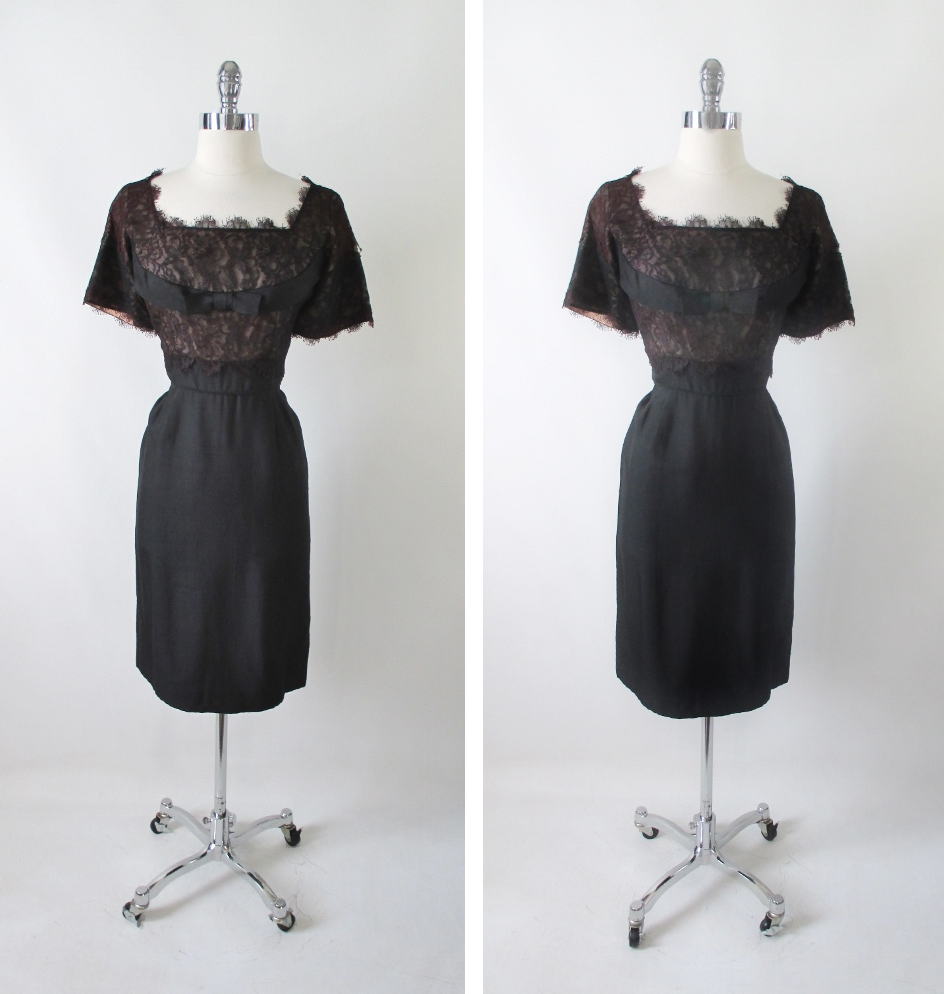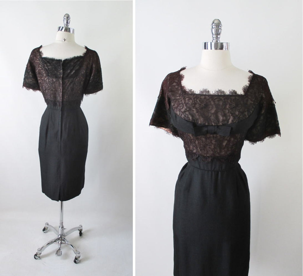 Vintage 50's H. Liebes Black Lace Evening Cocktail Party Sheath Dress M