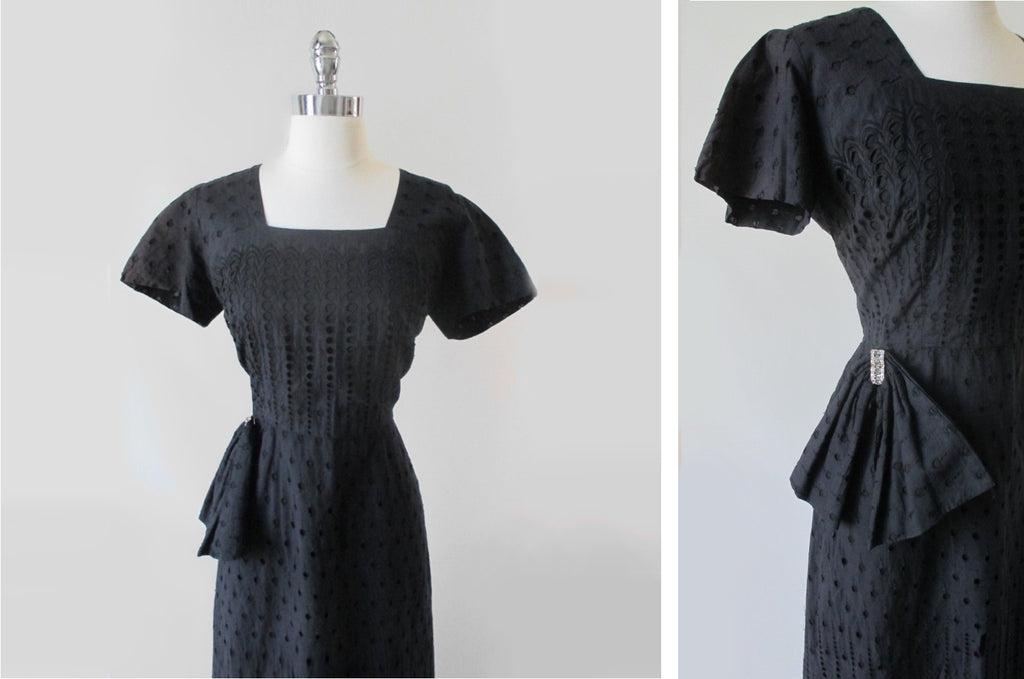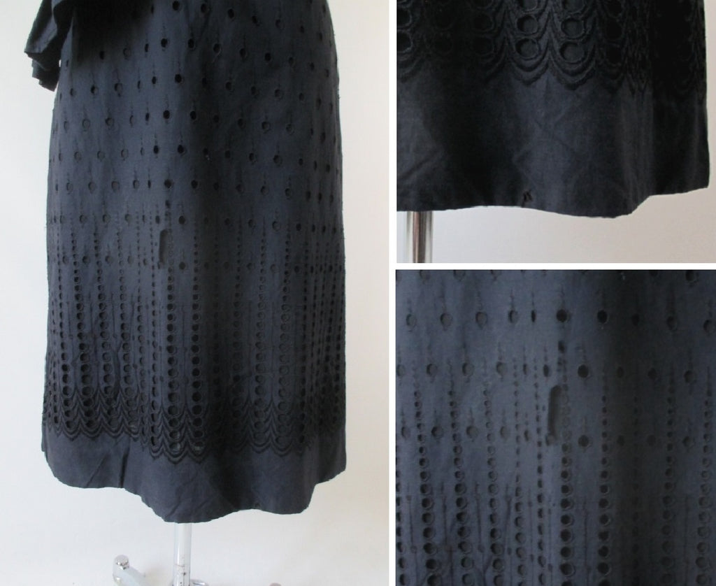 Vintage 50's Black Eyelet Sheath Dress L • As Found