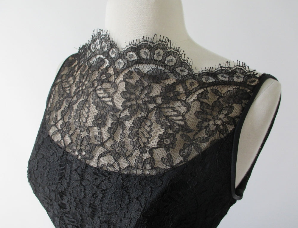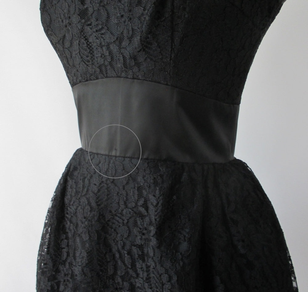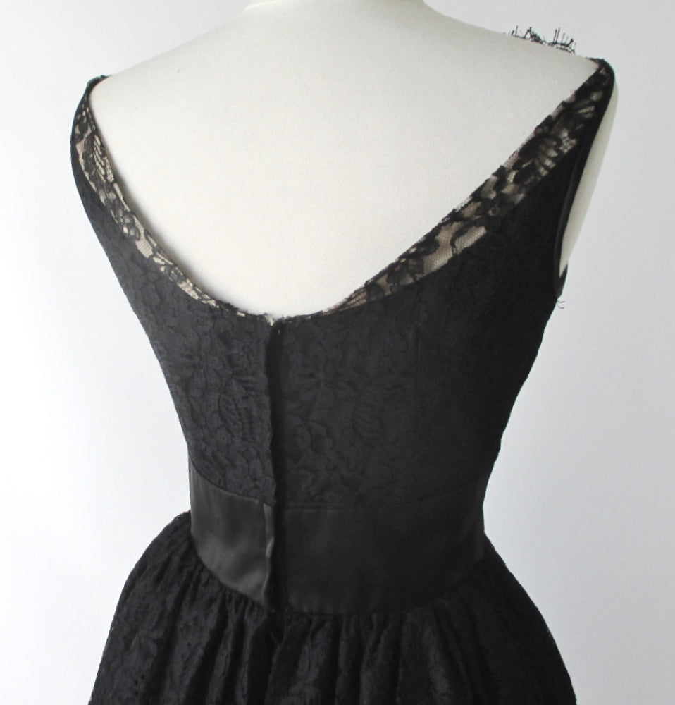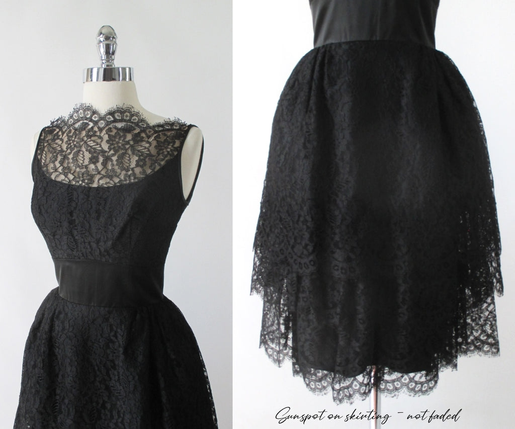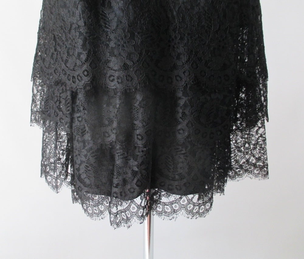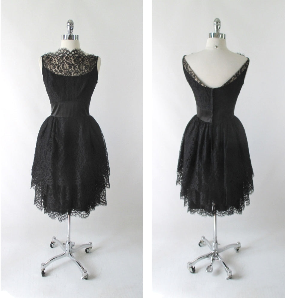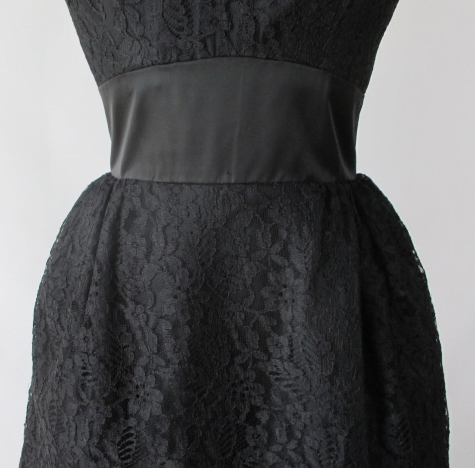 Vintage 60's 50's Black Tiered Lace & Satin Party Dress S